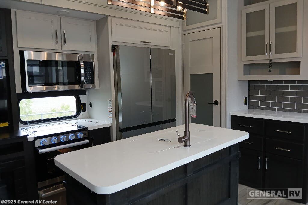 Welcome to the luxurious 2025 Keystone Avalanche 378BH, where comfort meets adventure in a truly stunning package. With a spacious length of over 40 feet, this fifth wheel is designed to accommodate your family and friends, offering sleeping space for up to 10 people. The master suite boasts a king-sized bed, while the bunkhouse provides four cozy bunks, perfect for the kids or guests. The living area is thoughtfully laid out with a tri-fold sofa and recliner, ensuring everyone has a comfortable spot to relax after a day of exploration. The heart of this RV is its center kitchen, equipped with a full-size refrigerator and a three-burner cooktop, making meal preparation a breeze. Imagine enjoying a home-cooked meal at the removable table, or perhaps unwinding by the fireplace with your favorite show on the entertainment center. The Avalanche 378BH also features two powered retractable awnings, creating the perfect outdoor living space for enjoying the great outdoors while being shielded from the elements. Practicality meets luxury with the Avalanche’s generous storage solutions, including a master closet and ample underneath storage. Although washer and dryer units are not included, the RV is prepped for them, adding convenience to your travels. With a robust fresh water capacity of 75 gallons and spacious gray and black water tanks, this RV is ready for extended adventures. For more details or to experience this incredible RV in person, visit your nearest General RV dealership.