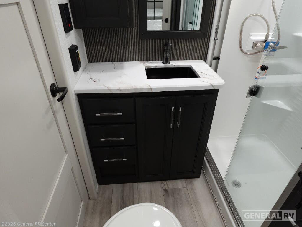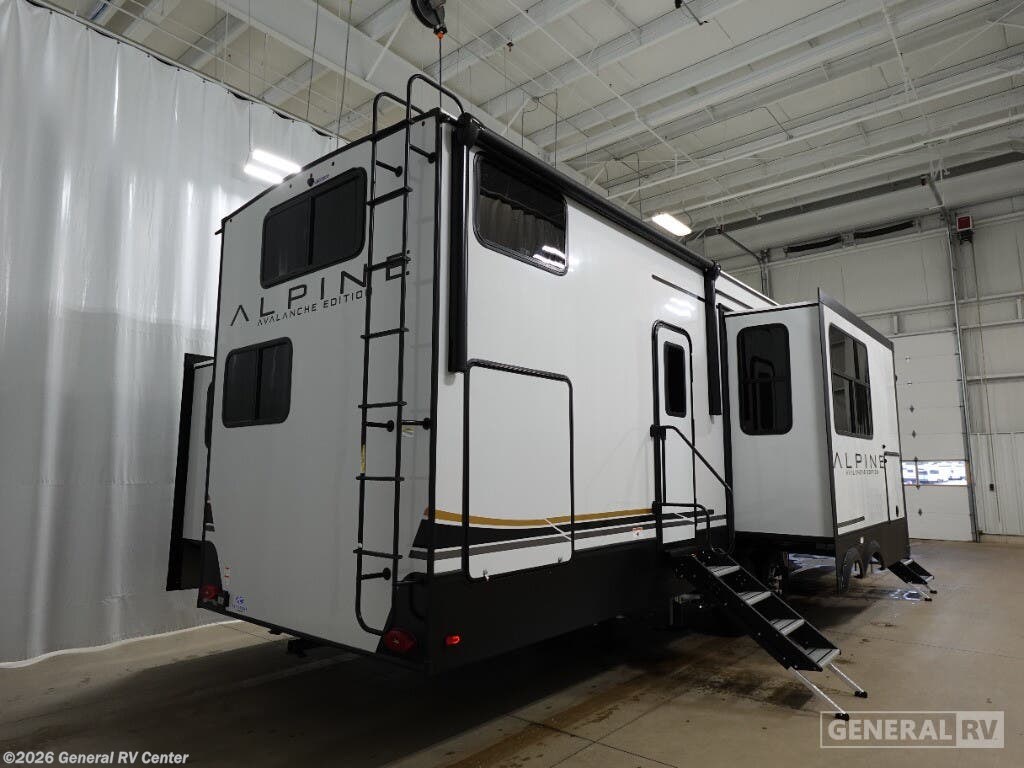 Experience the pinnacle of luxury and comfort with the 2025 Keystone Alpine 380LT. This fifth wheel is designed for those who crave adventure without sacrificing the comforts of home. With its spacious layout, the Alpine 380LT is perfect for families or groups, offering ample sleeping accommodations with a king bed, double bed, and two convertible sofas. The center kitchen is a culinary enthusiast's dream, featuring a full-size electric refrigerator and a three-burner cooktop, making meal prep a breeze whether you're at a campsite or off the beaten path. The thoughtfully designed floorplan includes a center living area that invites relaxation and entertainment, while the loft area provides additional sleeping or storage space. The master bedroom, equipped with a king bed and ample closet space, ensures restful nights on the road. Plus, the unit is prepped for a washer and dryer, adding a layer of convenience for extended stays. With a robust fresh water capacity of 75 gallons and generous gray and black water tanks, the Alpine 380LT is ready for your next big adventure. Visit your nearest General RV dealership to explore this exceptional model in person!