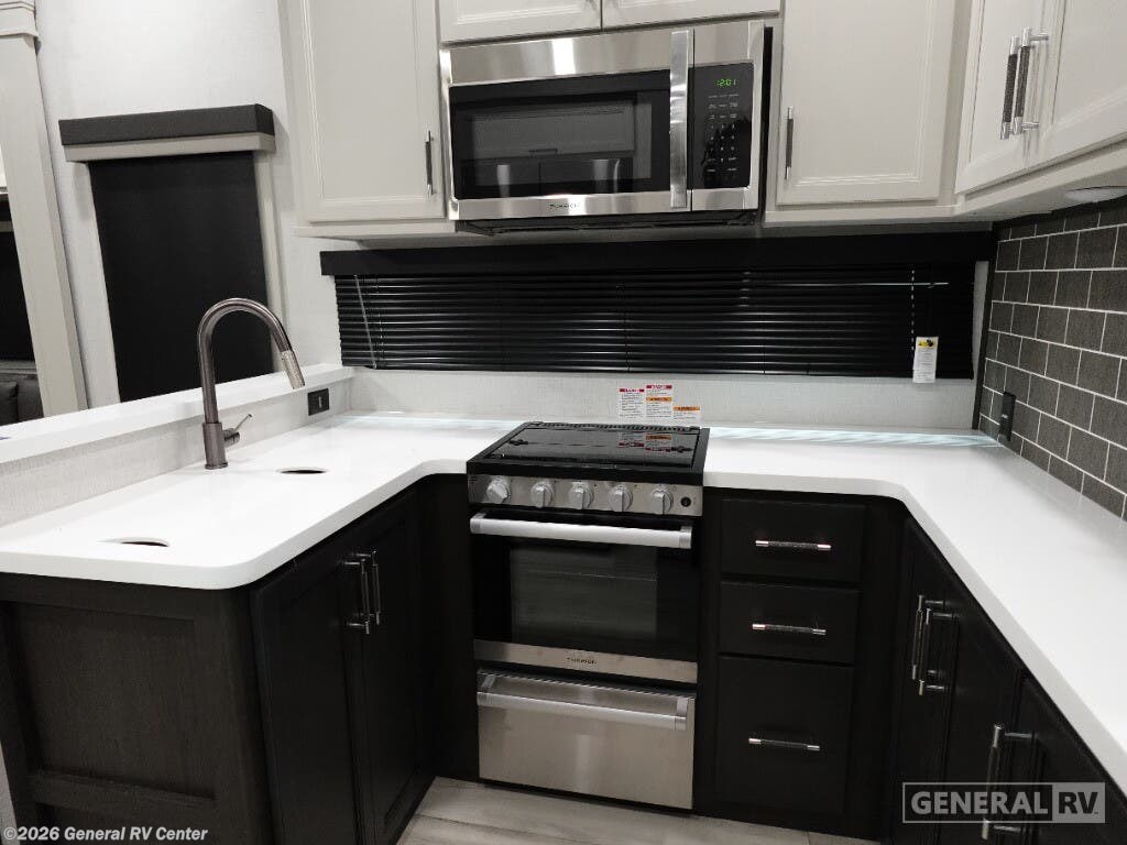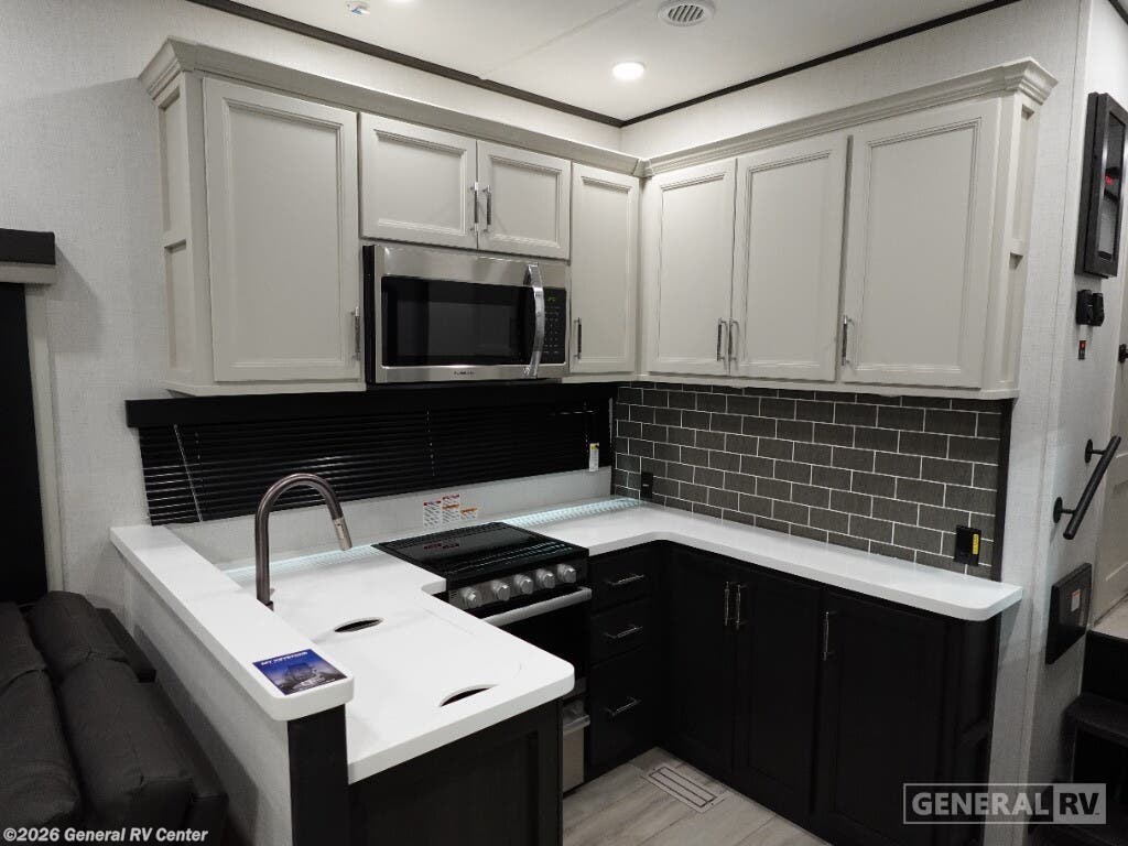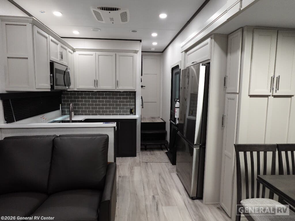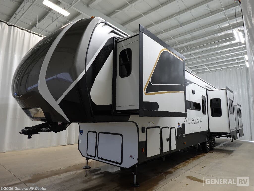 Experience the pinnacle of luxury and comfort with the 2025 Keystone Alpine 380LT. This fifth wheel is designed for those who crave adventure without sacrificing the comforts of home. With its spacious layout, the Alpine 380LT is perfect for families or groups, offering ample sleeping accommodations with a king bed, double bed, and two convertible sofas. The center kitchen is a culinary enthusiast's dream, featuring a full-size electric refrigerator and a three-burner cooktop, making meal prep a breeze whether you're at a campsite or off the beaten path. The thoughtfully designed floorplan includes a center living area that invites relaxation and entertainment, while the loft area provides additional sleeping or storage space. The master bedroom, equipped with a king bed and ample closet space, ensures restful nights on the road. Plus, the unit is prepped for a washer and dryer, adding a layer of convenience for extended stays. With a robust fresh water capacity of 75 gallons and generous gray and black water tanks, the Alpine 380LT is ready for your next big adventure. Visit your nearest General RV dealership to explore this exceptional model in person!