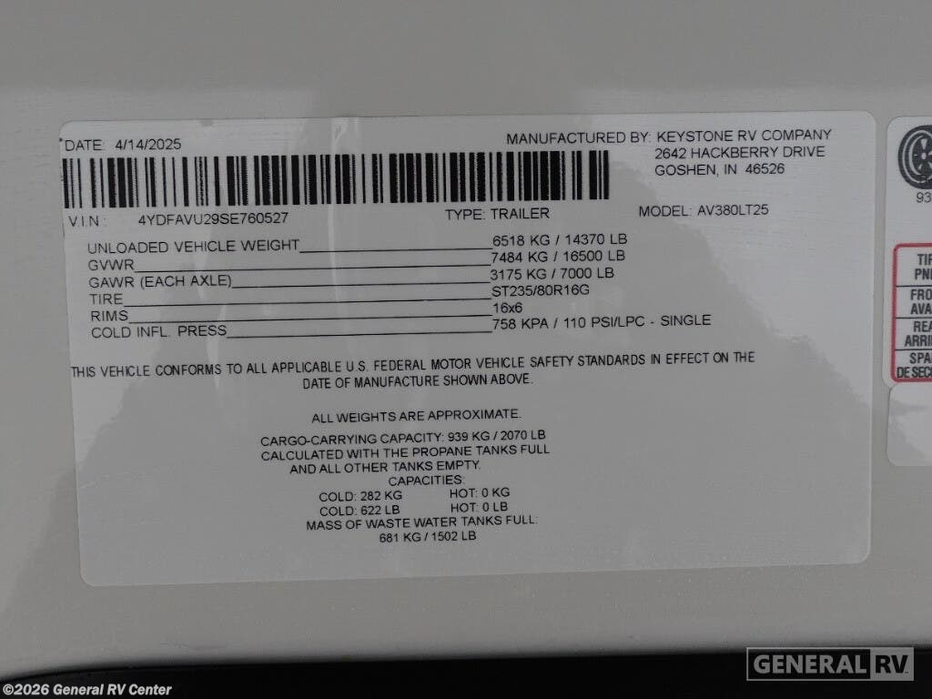 Request More Info on this 2025 Keystone Avalanche 380LT Offered for sale by General RV Center