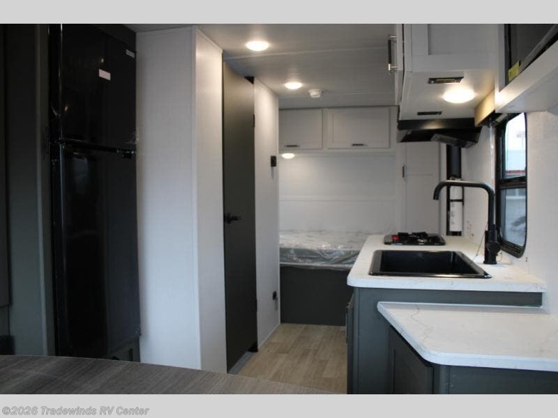 Simple and lightweight, this travel trailer is the unit you've been searching for! Once you arrive at your destination, unload the pass-thru storage, then head inside to start lunch in the full kitchen. Here, you'll find a cooktop and microwave to cook meals on and an 8 cu. ft. refrigerator for perishables. The rear U-shaped dinette can serve as dining and sleeping space for your guests, while you take the front corner queen bed. Don't let this travel trailer slip away!