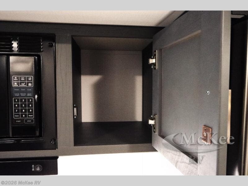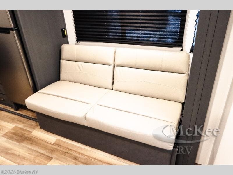 This travel trailer with a large slide out is sure to meet all your needs. When you arrive at the campground, you can put out the patio awning, unload the pass-thru storage, and relax in your camp chairs. The cooktop and microwave oven in the rear corner kitchen will let you make lunch for everyone, and the 8 cu. ft. refrigerator and pantry will help you keep food stocked. You will love having a queen bed to sleep on each night, and the booth dinette and jack knife sofa provide seating and sleeping space for guests!