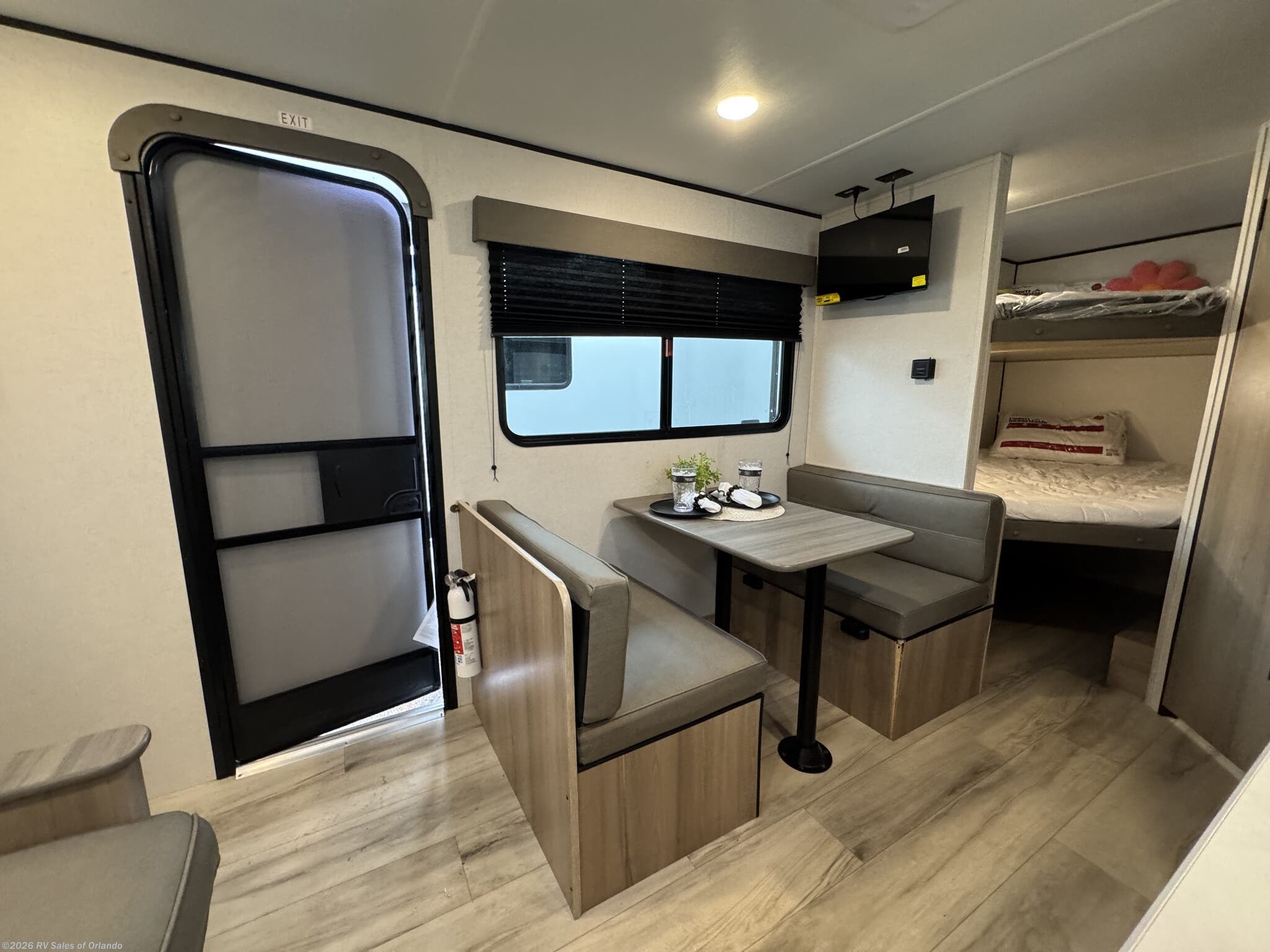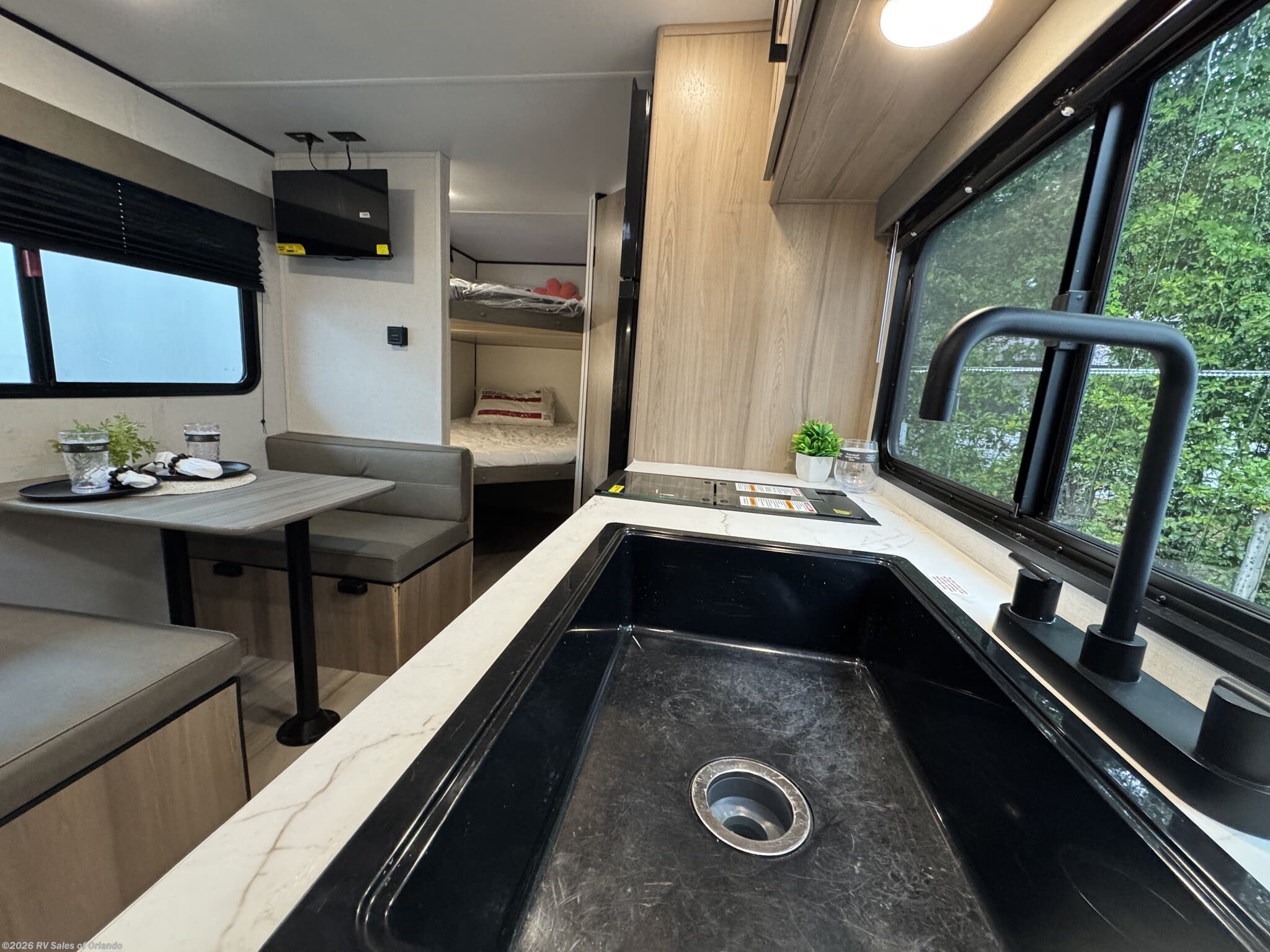 Great family vacation bunkhouse travel trailer 27ft with double wide bunks, leather sofa sleeper/jack-knife Nice bathroom, large dinette, front queen bed with privacy curtain. Full kitchen with stove top, microwave, refrigerator/freezer, brand new queen mattress never used. the MSRP for a 2026 is $26,648! Save over 8k Selecting almost identical 2025 for only 15,995 & no added fees! Just price & local sales tax!