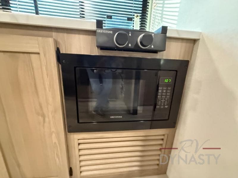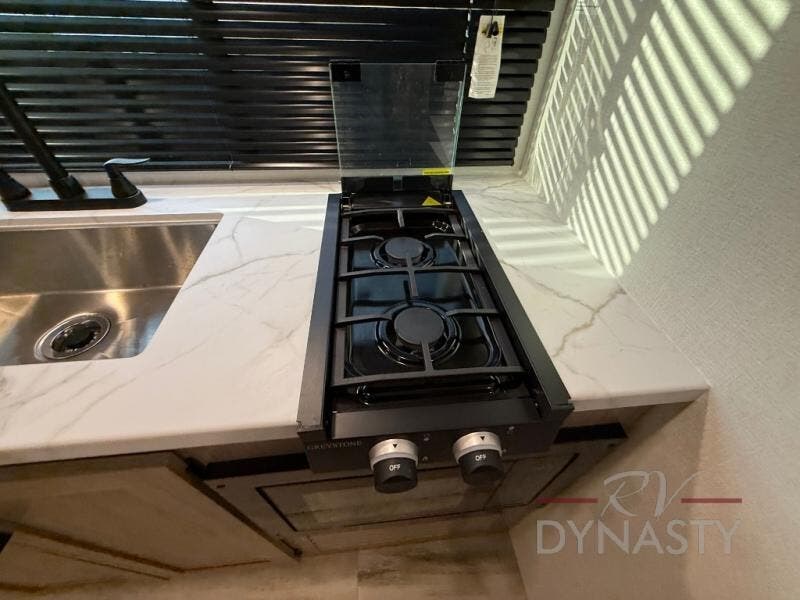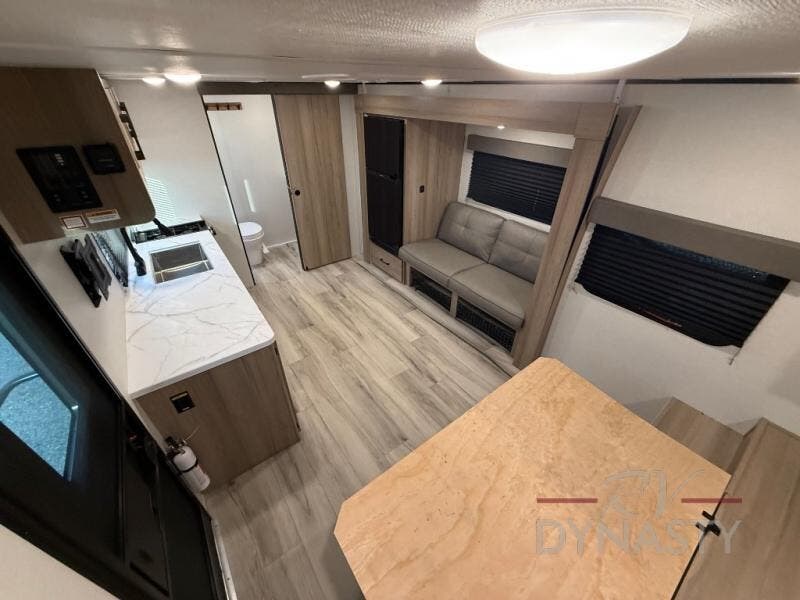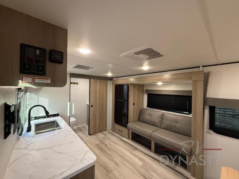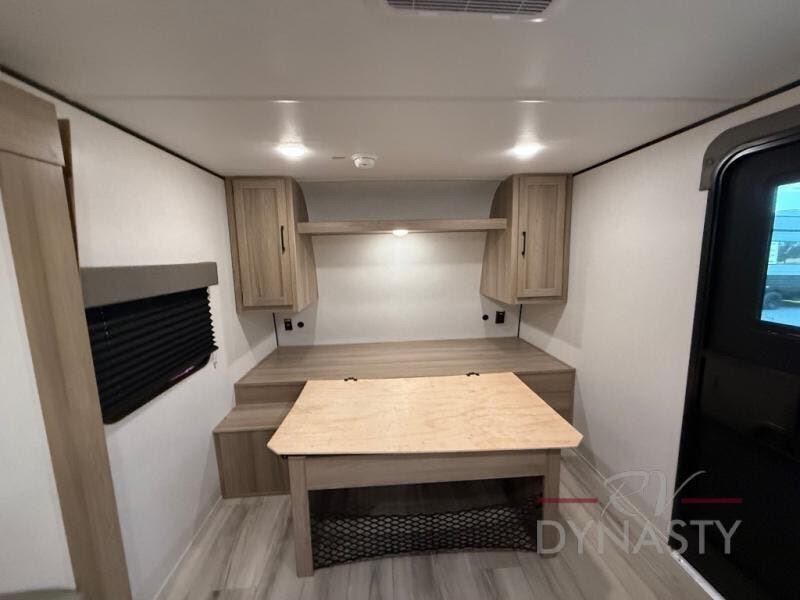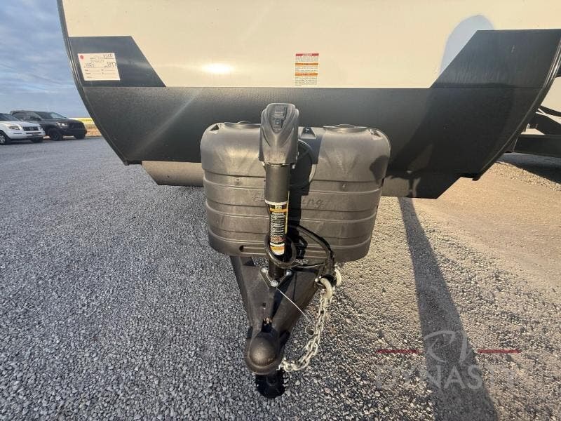 You'll love every minute spent in this single slide out, couple's trailer. There is a front bedroom with a queen bed and dual bedside wardrobes to keep your things tidy, plus a full rear bath to easily clean up each day. A jack knife sofa with a removable table will provide a place to dine, relax, and even let a guest or two little ones sleep at night. You'll find ample counter space in the kitchen to prep meals, along with a two burner range, a microwave oven, and an 8 cu. ft. 12V refrigerator for food storage. Outside, a 14' power awning will provide some much needed shade, and a pass-through storage will keep your fishing poles organized!