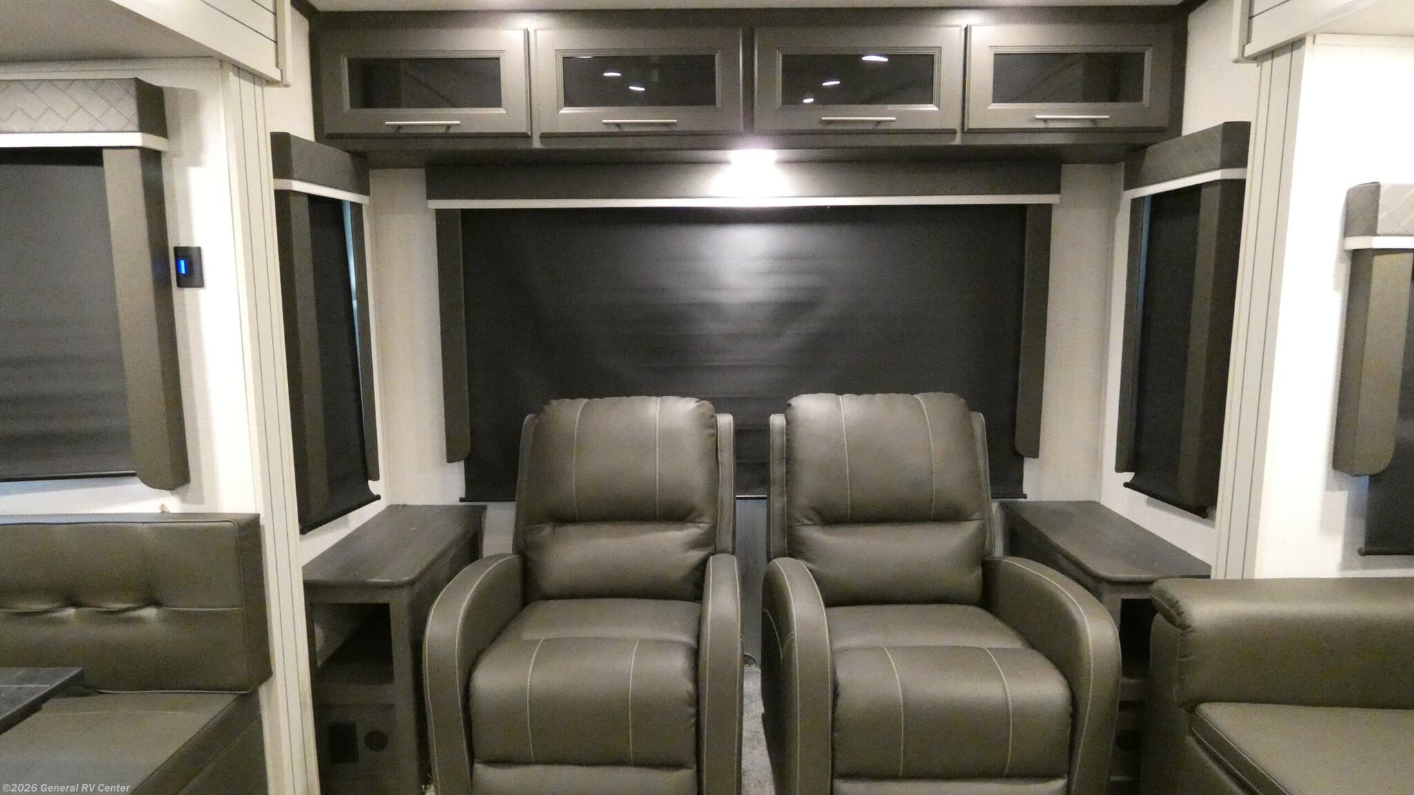 The 2025 Keystone Cougar Half-Ton 27SGS is your gateway to adventure, offering a perfect blend of comfort and functionality. With a spacious layout that includes a center kitchen and rear living area, this RV is designed for those who love to entertain or simply relax in style. The kitchen, equipped with a three-burner cooktop and full-size electric refrigerator, ensures you can whip up your favorite meals with ease. The living area features a tri-fold sleeper sofa and dual recliners, making it an inviting space to unwind after a day of exploration. As you move towards the front, you'll find a cozy bedroom with a queen bed, ample wardrobe space, and nightstands, ensuring a restful night's sleep. The center bath offers convenience with its plastic/glass shower and linen storage. With a 10 ft. powered retractable awning, you can enjoy the great outdoors while being shaded from the sun. The Cougar Half-Ton 27SGS, with its impressive cargo capacity and sleek design, is ready to accompany you on all your journeys. For more details, visit your nearest General RV dealership.