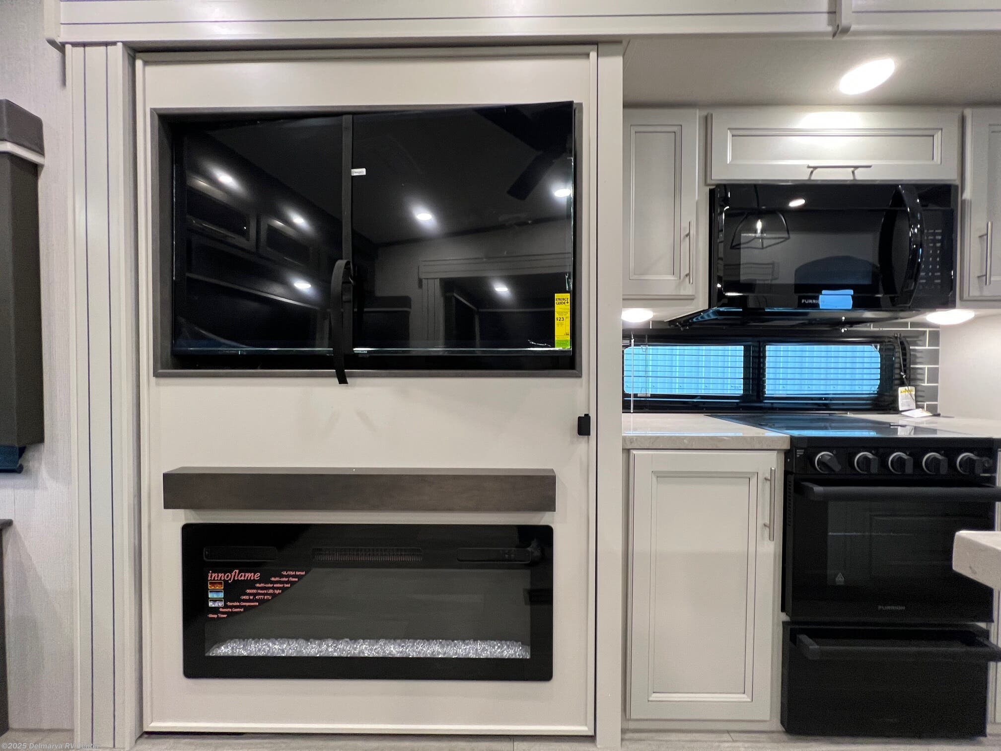 Booth Dinette, Ceiling Fan, Fireplace, Medicine Cabinet, Queen Bed, Rocker Recliner(s), Roof Vents, Shower, Toilet -