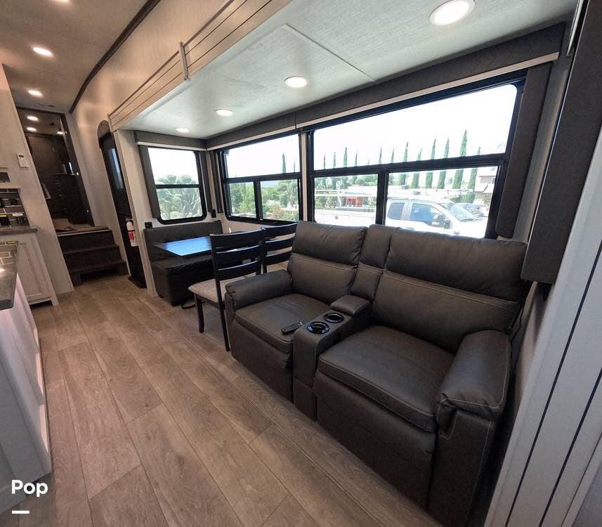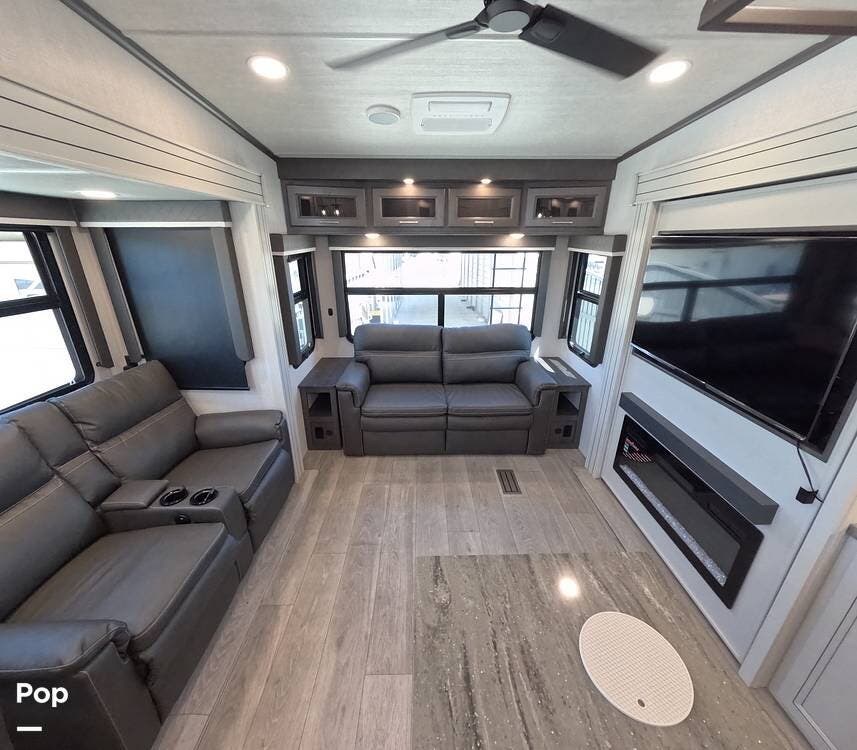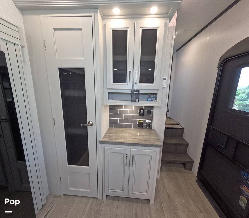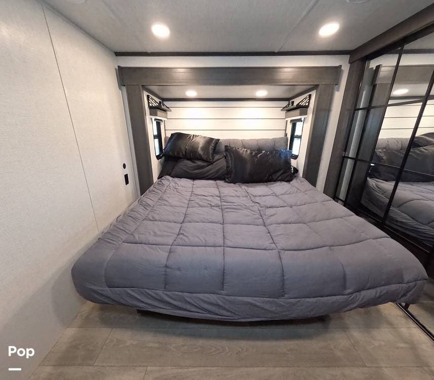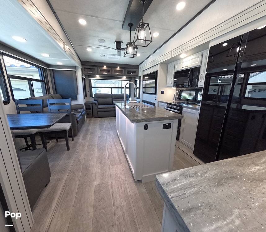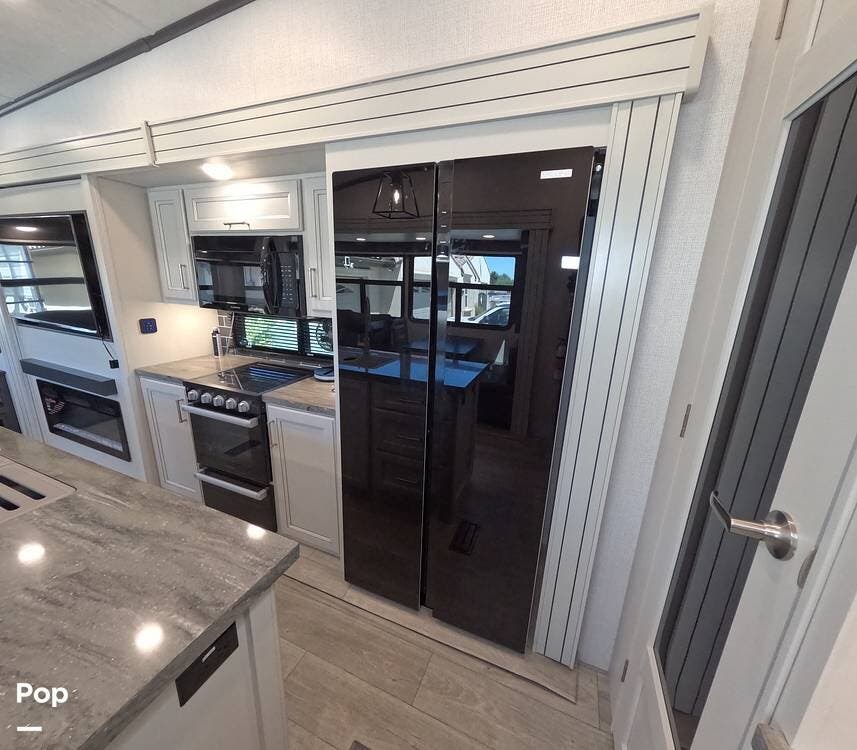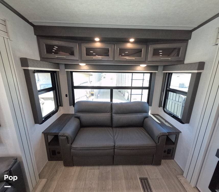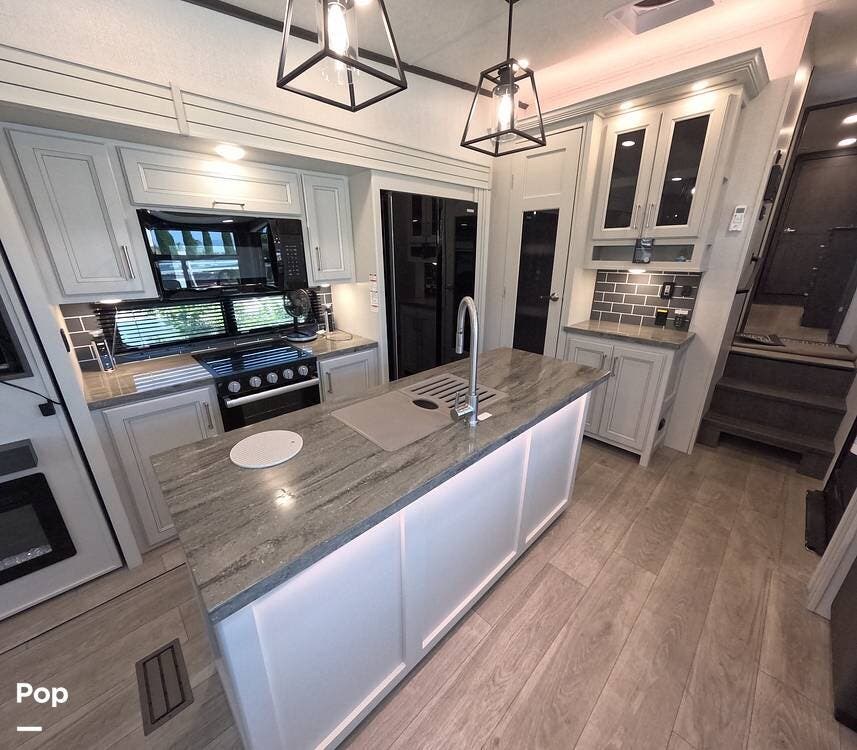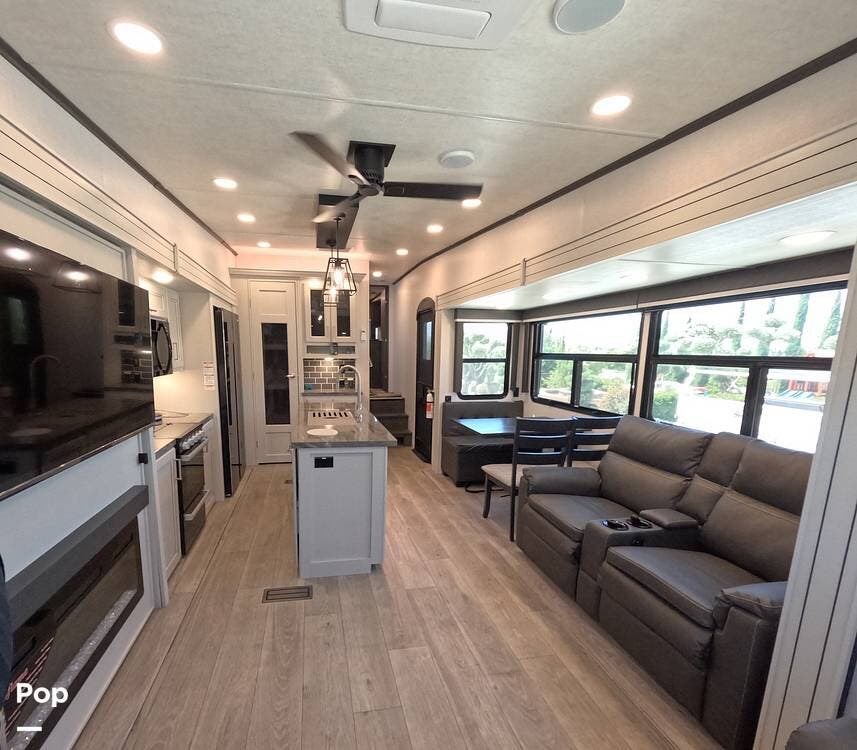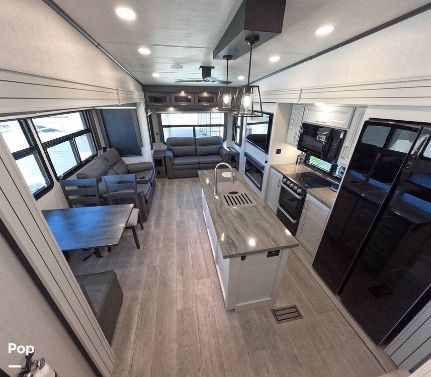 This stunning fifth wheel has never hit the road and is in pristine, showroom condition.