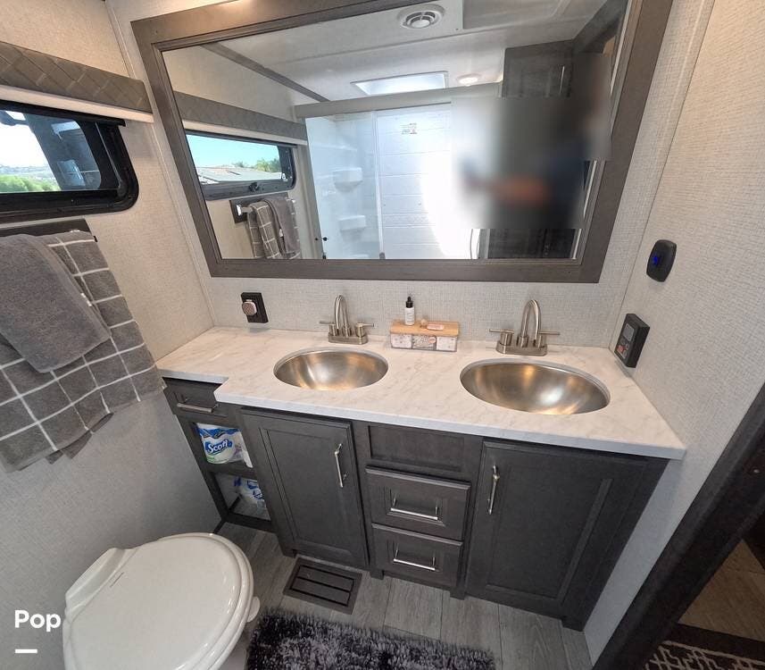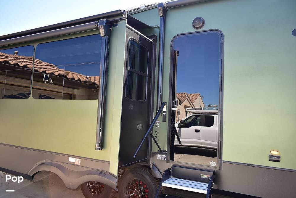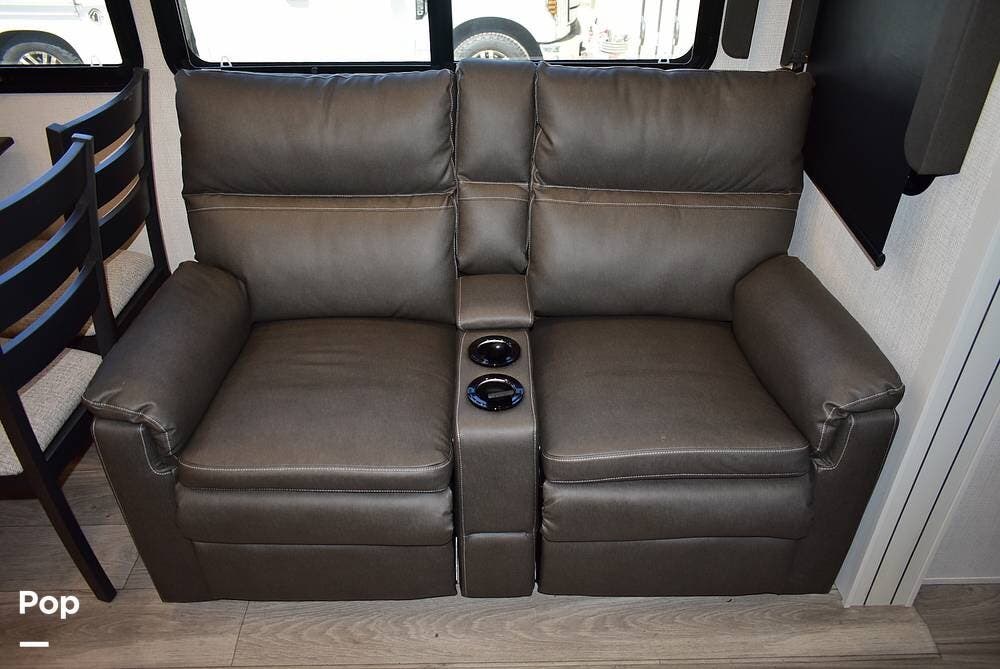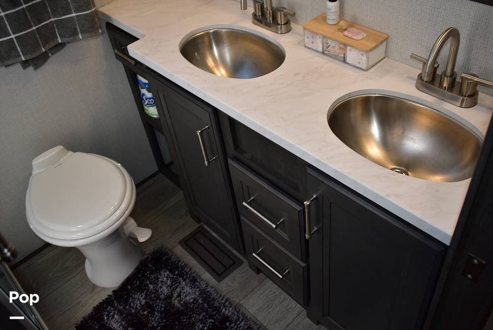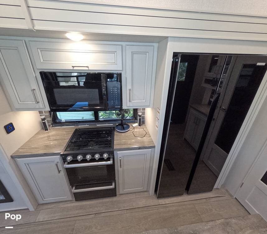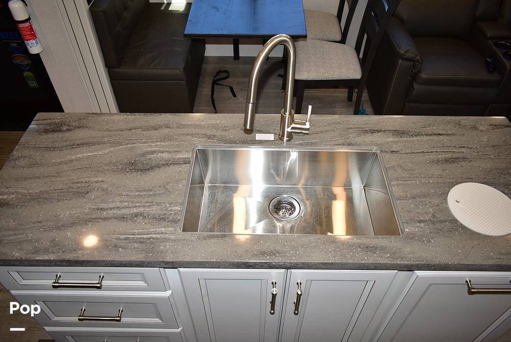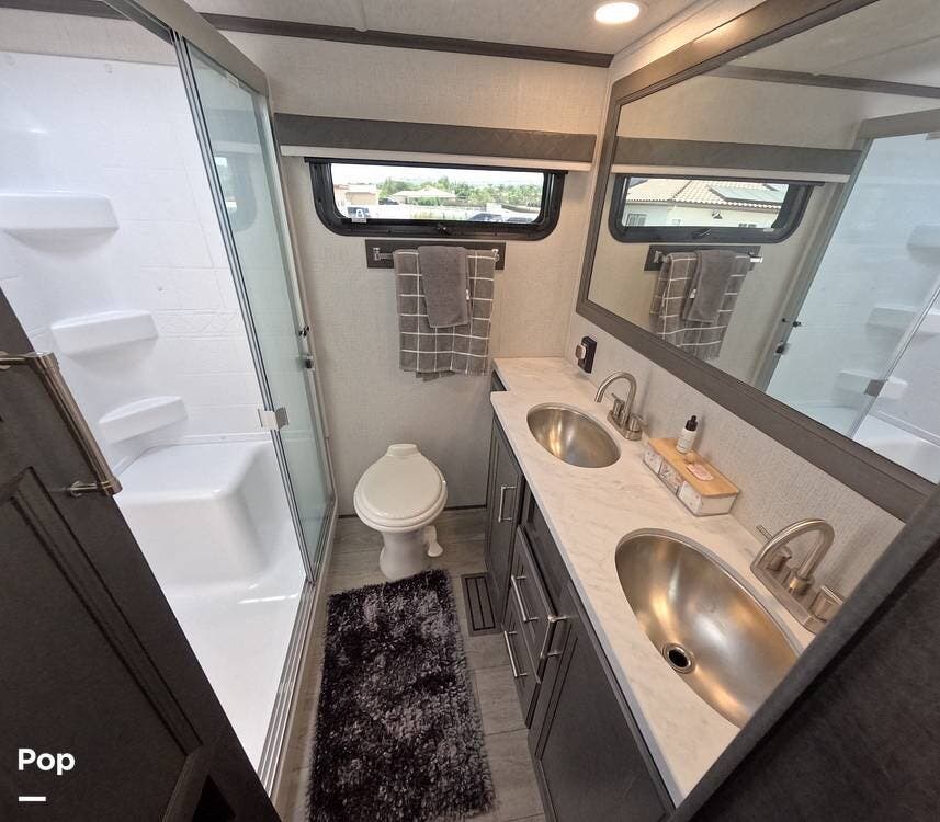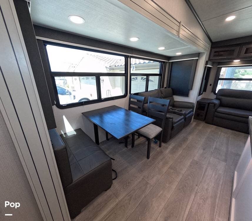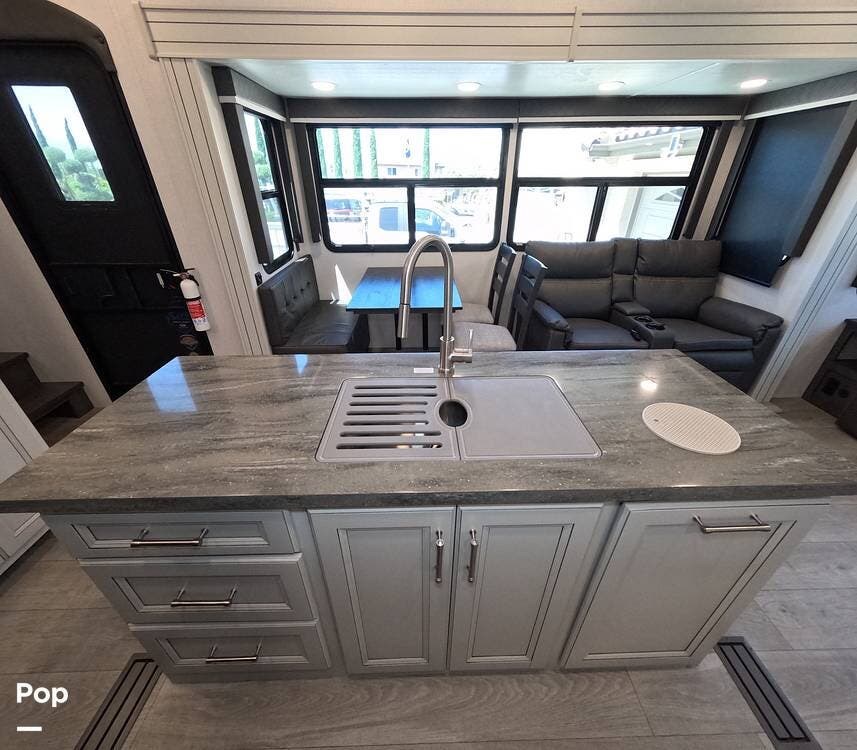 This stunning fifth wheel has never hit the road and is in pristine, showroom condition.