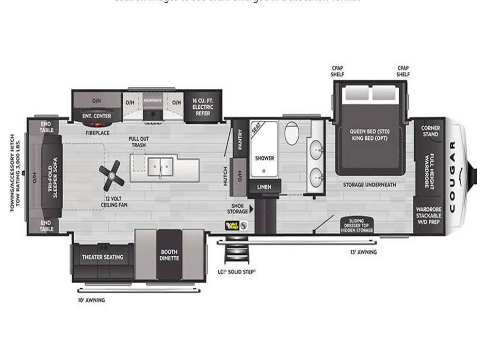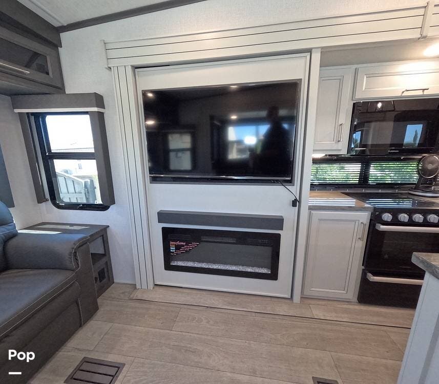 Designed with both style and functionality in mind, the 316RLS features a spacious rear living area, cozy theater seating, a large tri-fold sleeper sofa, and an entertainment center with a fireplace for those cozy nights in.