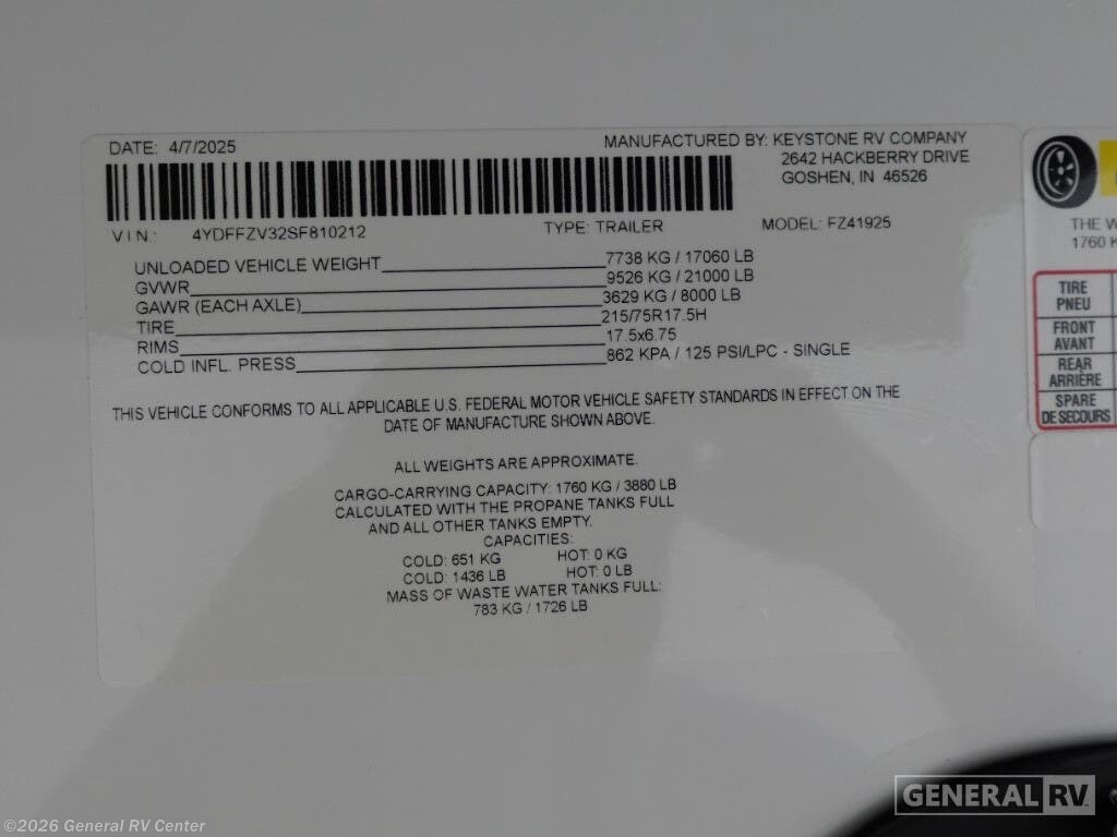 Request More Info on this 2025 Keystone Fuzion 419 Offered for sale by General RV Center