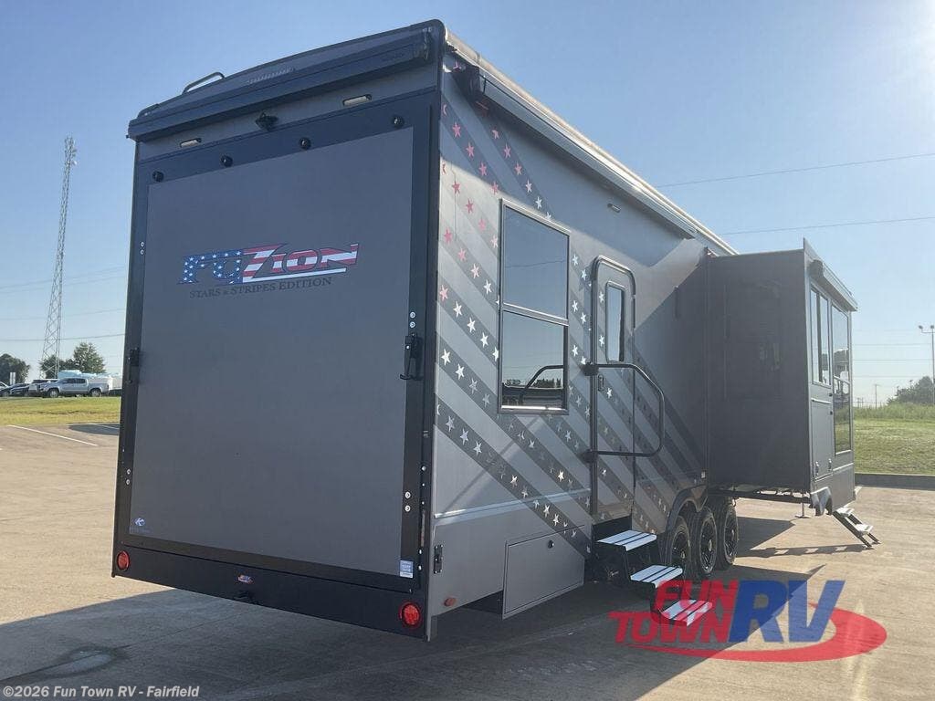 Get your adrenaline pumping with any one of these Keystone RV Fuzion fifth wheel toy haulers! The frame welded, Adjust-A-Trac tie-downs have 38 points to fully secure your toys as you travel, and the extended garage lengths have outside storage so you can haul bigger toys. A fully enclosed fuel pump station is integrated with the iN-Command Generation 3 control system with Global Connect. And the exclusive Omni-Chill technology offers high-efficiency air conditioning and maximum cooling. The interior provides fiberglass backed linoleum flooring, extra-tall slide height, solid wood cabinet and drawer frames, and extra tall ceilings with crown molding to mention a few luxuries. Outside, you'll find three Girard cassette awnings, 4k framed tinted safety glass windows, a Titan hydraulic leveling system, and many more conveniences!