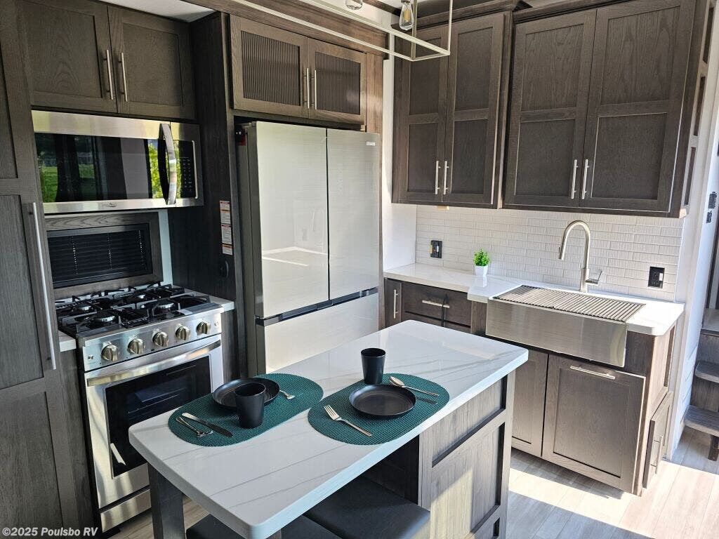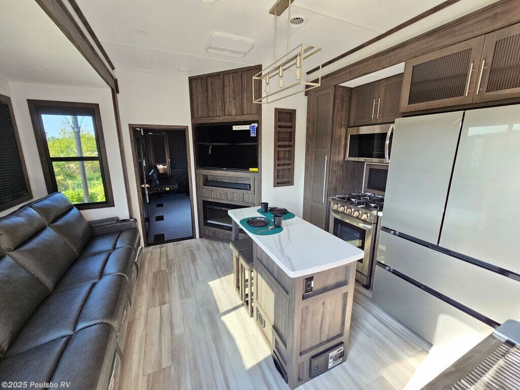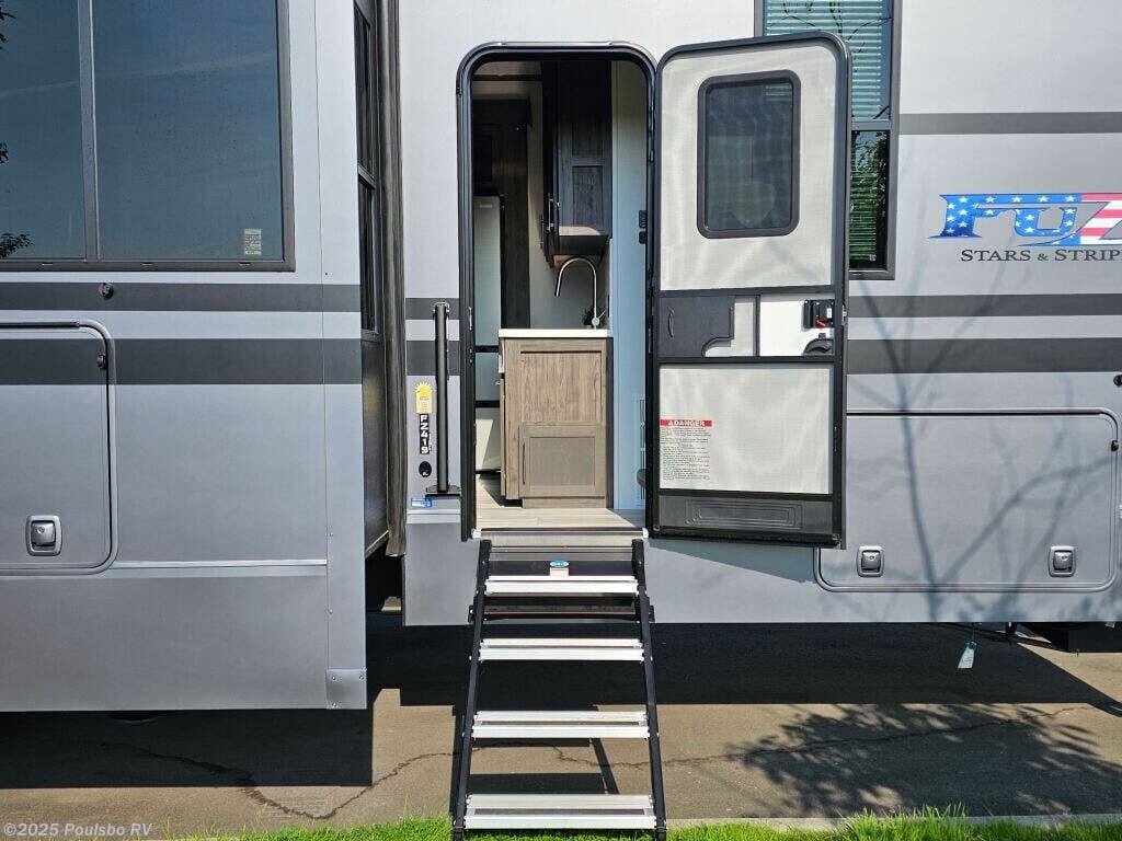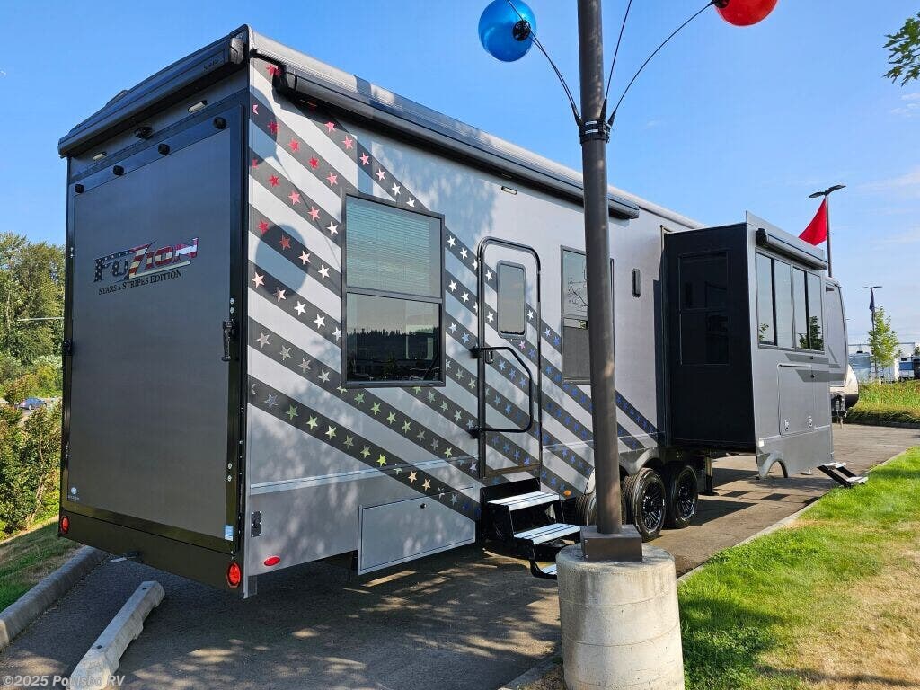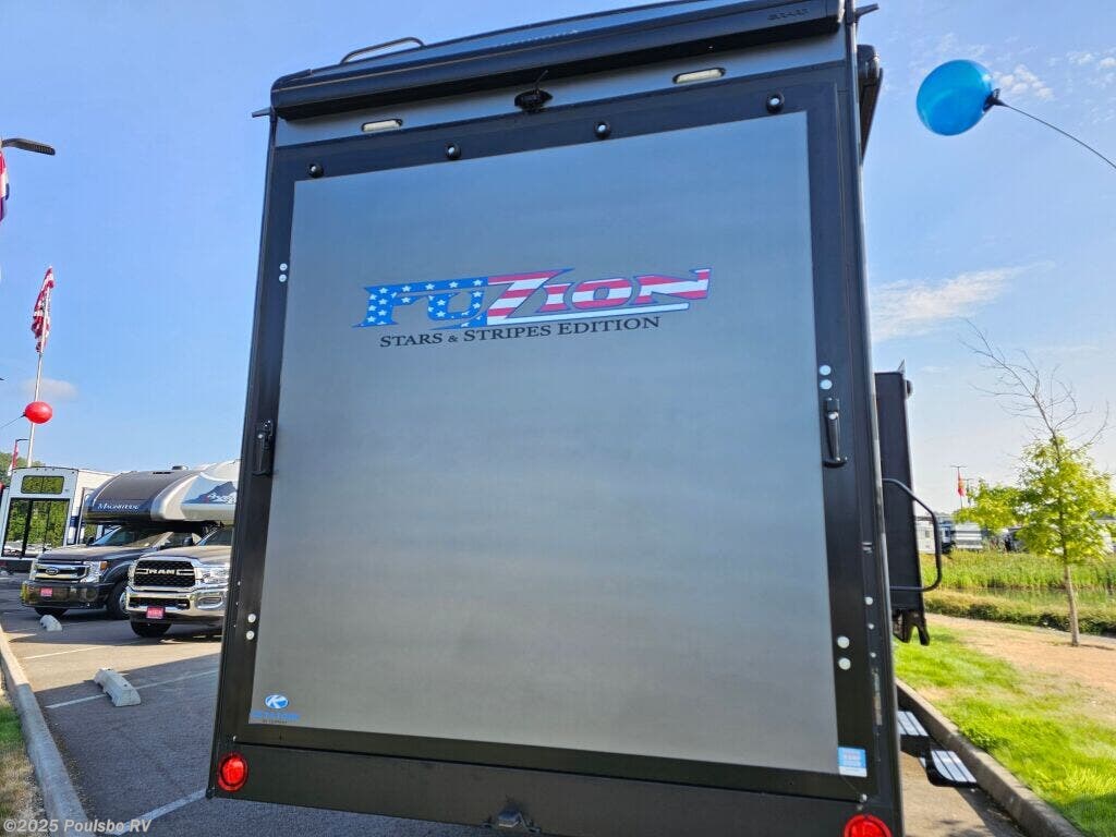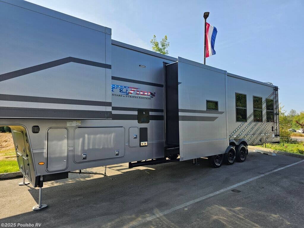 Introducing the 2025 Keystone Fuzion Toy Hauler 419, an exceptional RV designed for adventurous families seeking outdoor experiences. This remarkable toy hauler boasts a generous length of 44.62 feet, providing ample living space for relaxation after a day of adventure. With a dry weight of 16,935 pounds and a GVWR of 21,000 pounds, this RV is built to handle your outdoor toys and equipment effortlessly while ensuring a stable ride. As a family-owned, award-winning local RV dealer with multiple locations in Sumner, Everett, Kent, and Mt. Vernon Washington, Poulsbo RV is here to help you find the perfect RV. This brand-new model features three spacious slide-outs, allowing for a comfortable living area that adapts to your family's needs. The sleeping capacity for up to seven people ensures that everyone has a cozy spot to rest after a day filled with fun and exploration. The Fuzion 419 incorporates modern conveniences including three awnings for shade on sunny days and front and rear power leveling jacks for effortless setup at your chosen destination. With a hitch weight of 3,770 pounds, this toy hauler also includes an impressive audio system to enhance your entertainment experience, making it an ideal spot for gatherings. Whether you are planning a weekend getaway or a long road trip, the Keystone Fuzion Toy Hauler offers the flexibility and comfort you desire. Experience RVing like never before with this spacious model that is perfect for creating lasting memories with family and friends. Stock#: S864, VIN: 4YDFFZV3XSF810216.