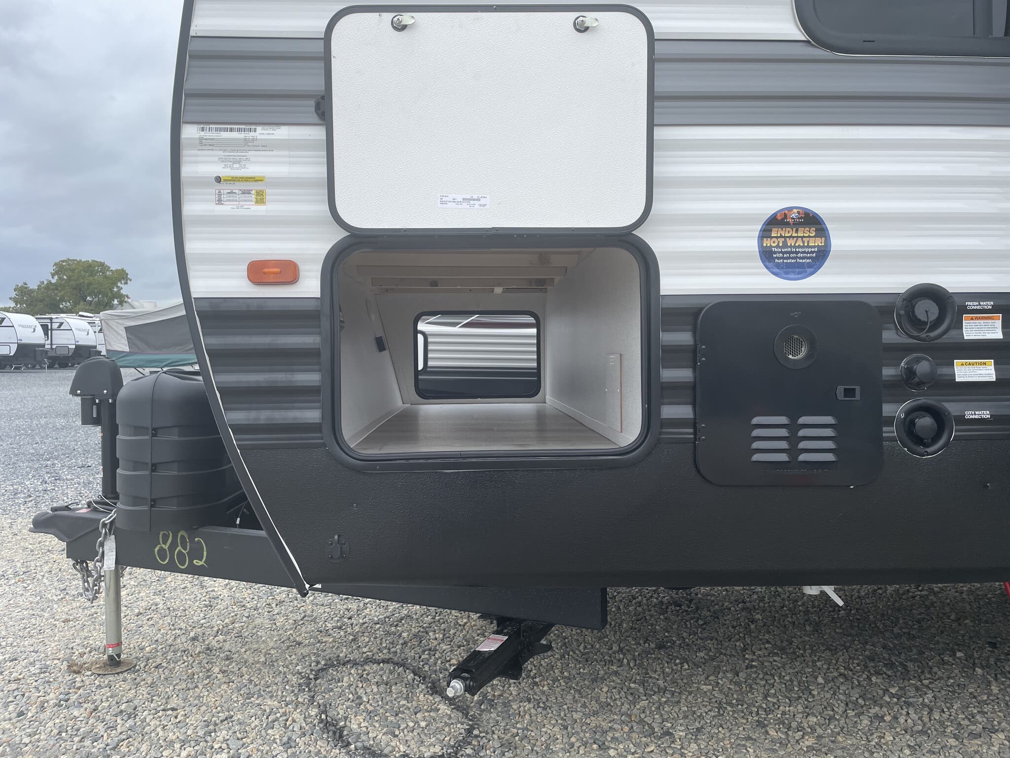 The campground will feel like home in this 2025 Keystone Hideout East 22MLS. This 2025 Keystone Hideout East 22MLS welcomes you into the Keystone family! The sleep capacity allows you to bring up to 4 along on your travels in this rig. Setup is a breeze thanks to one roomy slide. The fridge, stove make the perfect combo for eating well on the road. Spend time together as a family in the living area with the theater seating. Remote work, homeschooling and dinner times are all made possible by the booth dinette. Comfort is important when RVing, and you’ll find just that with the queen bed. Keep a comfortable temperature inside your rig with the heating option. If you’re thinking of heading off grid, this rig has a 46 fresh water tank. While the inside of this rig is enough on its own, the outside also features aluminum entrance steps, detachable power cord, diamond shield paint protection film, enclosed underbelly, external shower, heated underbelly, pass thru storage, power awning, power hitch jack, power roof vent, skylight, slideout, spare tire kit, stabilizer jacks and upgraded insulation package. An outside shower makes it easier to keep your adventure rig clean. Never run out of room for your belongings thanks to the pass-through storage underneath.