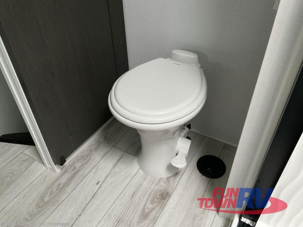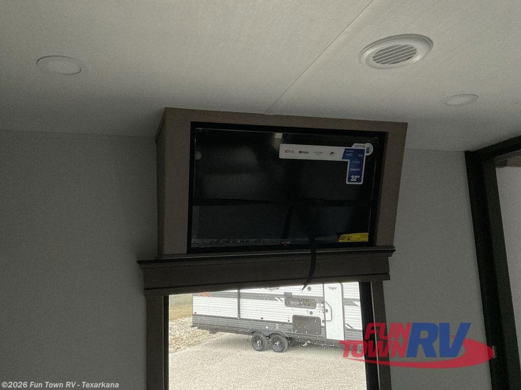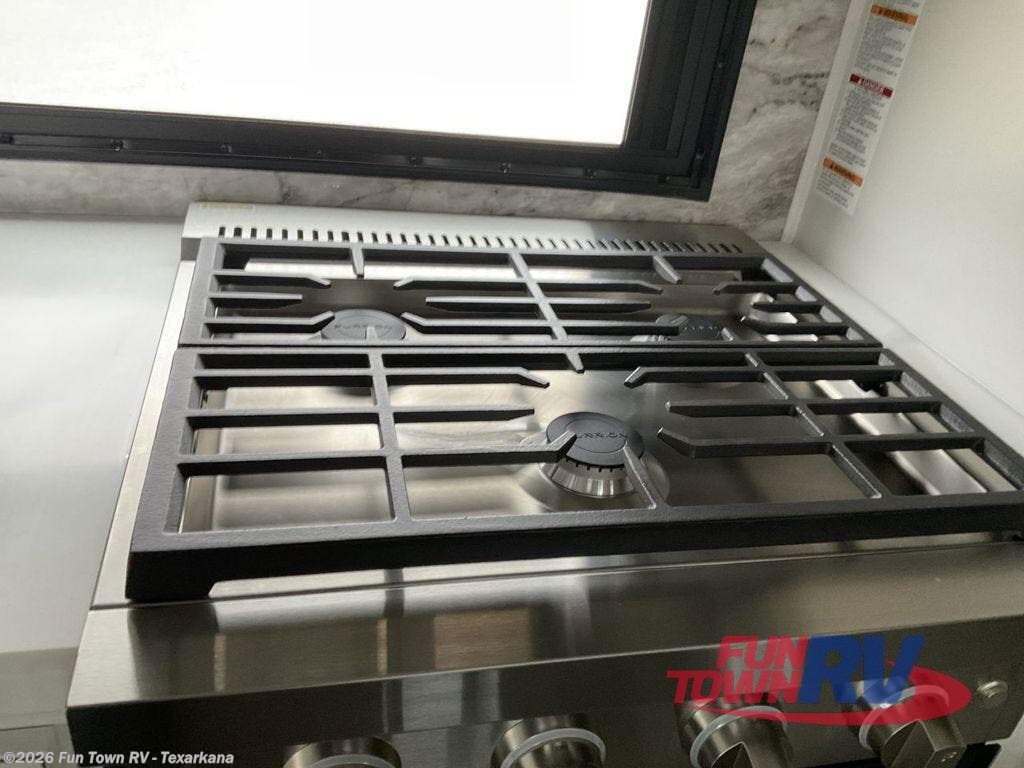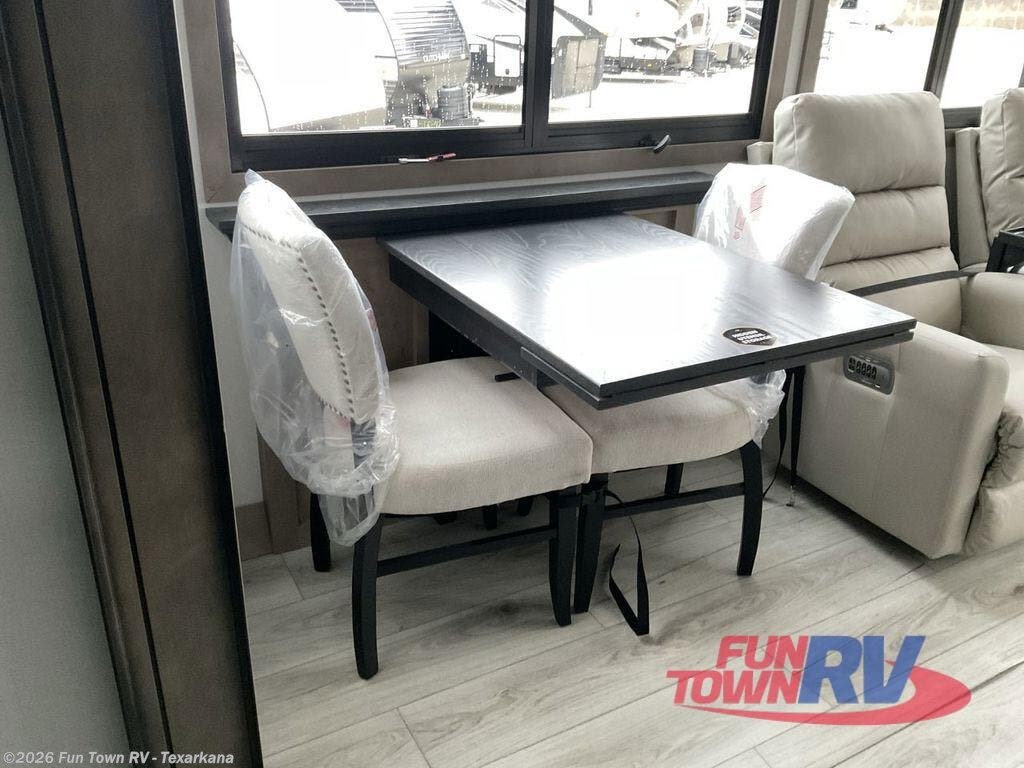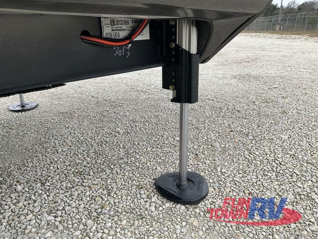 This fifth wheel has everything you need! The front private bedroom has a king bed slide across from a Smart HDTV with a dresser below it, plus a large front closet with a clothing hamper and stackable washer and dryer prep. Freshen up each morning in the full bathroom with the 48" x 30" fiberglass shower with a seat and skylight above for more natural lighting as you get ready. The kitchen has everything you need to prepare your best meals including extra countertop space on the kitchen island. Enjoy your meals at the dinette with storage and then relax on the rear hide-a-bed sofa or the power theater seating across from the entertainment center with a 5,000 BTU decorative fireplace heater and 50" Smart HDTV to watch your favorite movies!