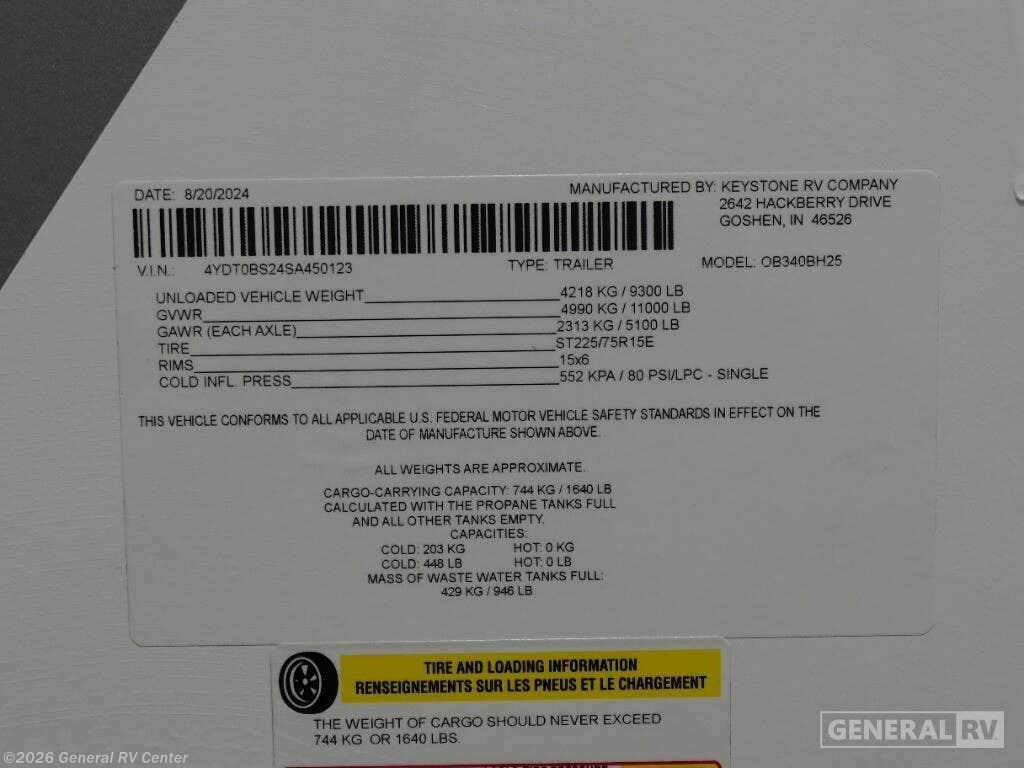 2025 Keystone Outback 340BH Specifications