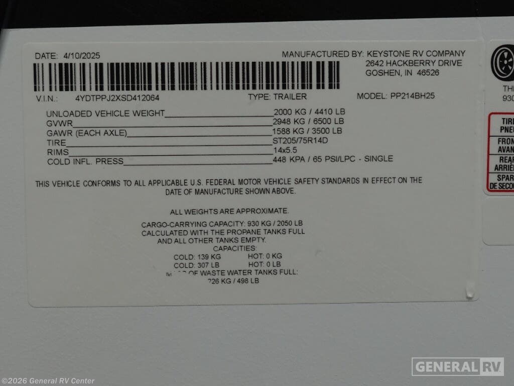 Experience the open road like never before with the 2025 Keystone Passport Classic 214BH. This RV is the perfect blend of comfort and functionality, designed to accommodate up to eight travelers. Its clever layout features a front living area with a versatile Murphy bed, allowing you to maximize space during the day and enjoy a restful night's sleep. The center kitchen is equipped with a three-burner cooktop and a full-size electric refrigerator, making it easy to whip up delicious meals while on the go. As you move through the RV, you'll appreciate the thoughtful design that includes double bunks with a flip-up option for additional storage, ensuring you have plenty of room for all your adventure gear. The rear bath offers convenience with a shower curtain and ample space to freshen up after a day of exploration. Outside, the 17-foot powered retractable awning creates the perfect outdoor lounge area, allowing you to enjoy the great outdoors in comfort. With its lightweight design and impressive cargo capacity, the Passport Classic 214BH is ready to take you and your loved ones wherever your heart desires. For more information, visit your nearest General RV Dealership.
