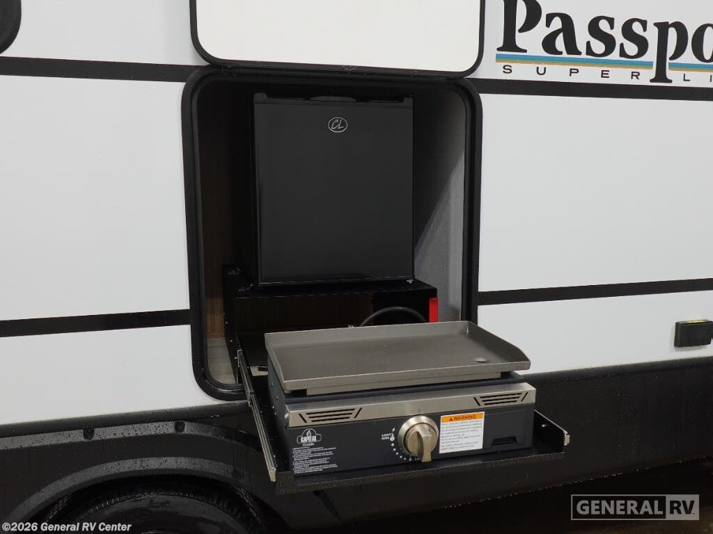 Experience the perfect blend of comfort and convenience with the 2025 Keystone Passport SL 2450RK. This RV is designed for those who love to travel in style while enjoying all the comforts of home. The rear kitchen layout is a culinary enthusiast's dream, equipped with a full-size electric refrigerator and a three-burner cooktop, making meal preparation a breeze. The center living area, featuring a tri-fold sofa and a booth dinette, offers ample space for relaxation and entertainment, easily accommodating up to six sleepers. The thoughtful design extends to the front bedroom, where you'll find a cozy queen bed flanked by nightstands and wardrobes, providing plenty of storage for your travel essentials. The center bath, with its sleek plastic and glass shower, ensures a refreshing experience after a day of adventure. Step outside and enjoy the great outdoors under the expansive 19 ft. powered retractable awning, complete with an outdoor kitchen and LP quick connect for alfresco dining. With its automatic heater and dual LP tanks, your comfort is ensured no matter the season. For more details and to explore this exceptional RV in person, visit your nearest General RV dealership.