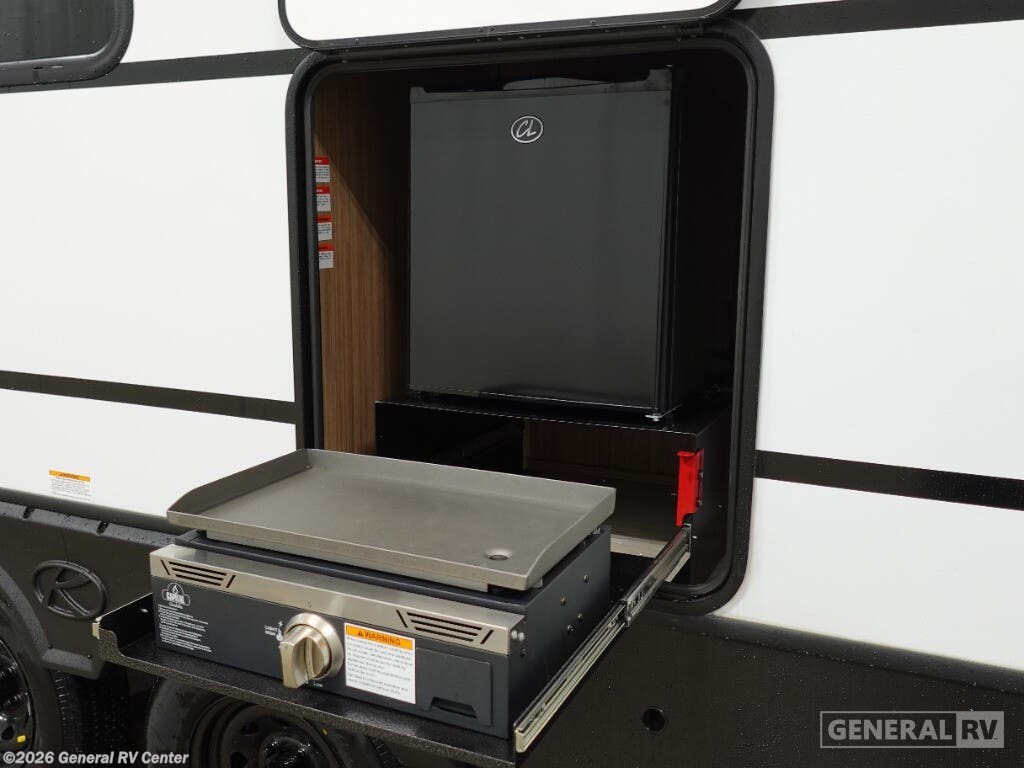 Experience the perfect blend of comfort and convenience with the 2025 Keystone Passport SL 2450RK. This RV is designed for those who love to travel in style while enjoying all the comforts of home. The rear kitchen layout is a culinary enthusiast's dream, equipped with a full-size electric refrigerator and a three-burner cooktop, making meal preparation a breeze. The center living area, featuring a tri-fold sofa and a booth dinette, offers ample space for relaxation and entertainment, easily accommodating up to six sleepers. The thoughtful design extends to the front bedroom, where you'll find a cozy queen bed flanked by nightstands and wardrobes, providing plenty of storage for your travel essentials. The center bath, with its sleek plastic and glass shower, ensures a refreshing experience after a day of adventure. Step outside and enjoy the great outdoors under the expansive 19 ft. powered retractable awning, complete with an outdoor kitchen and LP quick connect for alfresco dining. With its automatic heater and dual LP tanks, your comfort is ensured no matter the season. For more details and to explore this exceptional RV in person, visit your nearest General RV dealership.