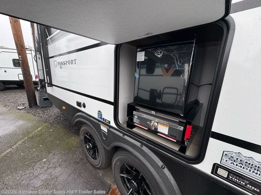 Make memories together as a family with this 2025 Keystone Passport 2600FK! This 2025 Keystone Passport 2600FK welcomes you into the Keystone family! If you’re looking for a family RV, you’ve found it: this rig sleeps 5. With two slides, you’ll have the perfect amount of room to make this rig feel like home. Entertain or cook up a cozy meal just for you in this RV kitchen equipped with the fridge, oven, stove. The TV make it easy to spend time together as a family. Comfort is important when RVing, and you’ll find just that with the king size bed. Keep a comfortable temperature inside your rig with the heating option. If you’re thinking of heading off grid, this rig has a 54 fresh water tank. While the inside of this rig is enough on its own, the outside also features black tank flush, detachable power cord, electric jack, enclosed underbelly, exterior speakers, front fiberglass cap w/window, heated underbelly, hitch, ladder, pass thru storage, power awning, power stabilizer jacks, roof vent, screen door, skylight, slam latch baggage doors, slideout, spare tire kit, tinted windows and upgraded insulation package. Pass-through storage allows for easy access to all your gear.
