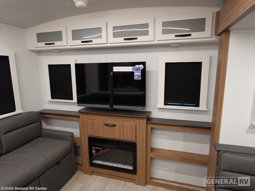 Embrace the open road with the 2025 Keystone Passport SL 2660RL, a travel trailer that combines comfort and style for the ultimate adventure. This model is designed with a rear living area that invites relaxation, featuring an L-shaped sectional perfect for unwinding by the entertainment center and fireplace. The center kitchen is equipped with a full-size refrigerator and a three-burner cooktop, making meal prep a breeze whether you're cooking for two or entertaining guests. The booth dinette and breakfast bar provide ample dining space, ensuring you can savor every meal in comfort. Retreat to the front bedroom, where a cozy queen bed awaits, flanked by nightstands and wardrobes for all your storage needs. The center bath offers convenience with its practical layout, ensuring easy access from both the living area and bedroom. Outside, the 19-foot powered retractable awning extends your living space into the great outdoors, perfect for enjoying the fresh air. With its thoughtful design and modern amenities, the Passport SL 2660RL is your ticket to unforgettable journeys. For more details, visit your nearest General RV Dealership.