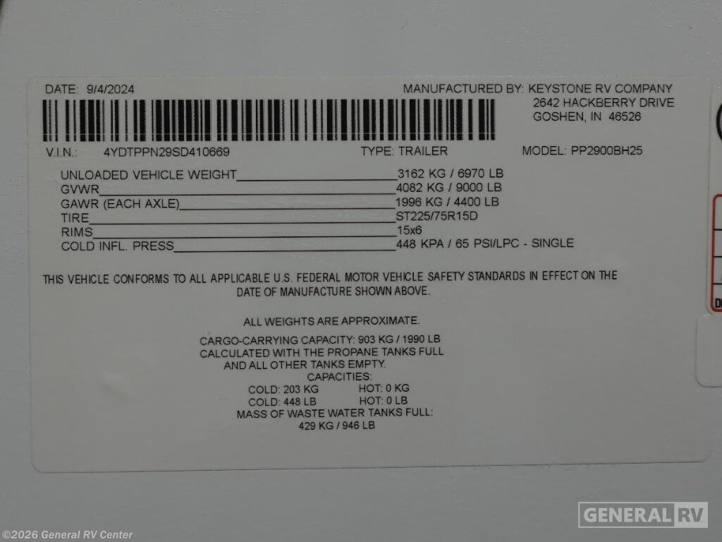Experience the perfect blend of comfort and adventure with the 2025 Keystone Passport SL 2900BH. This thoughtfully designed RV invites you to explore the open road while enjoying all the comforts of home. The spacious interior accommodates up to 10 sleepers, featuring a cozy queen bed, double beds, and convertible sleeping areas, making it ideal for family getaways or trips with friends. The center kitchen is equipped with a full-size electric refrigerator and a three-burner cooktop, ensuring you can whip up delicious meals with ease. The inviting living area, complete with a fireplace, offers a cozy spot to relax after a day of exploring. The Passport SL 2900BH is designed for convenience and fun. The rear bath provides privacy and functionality, while the outdoor kitchen and 21-foot powered retractable awning make outdoor gatherings a breeze. With ample storage options, including pass-thru storage, you'll have plenty of space for all your gear. Whether you're heading to the mountains or the beach, this RV is ready to make your travel dreams a reality. For more information and to see this model in person, visit your nearest General RV dealership.