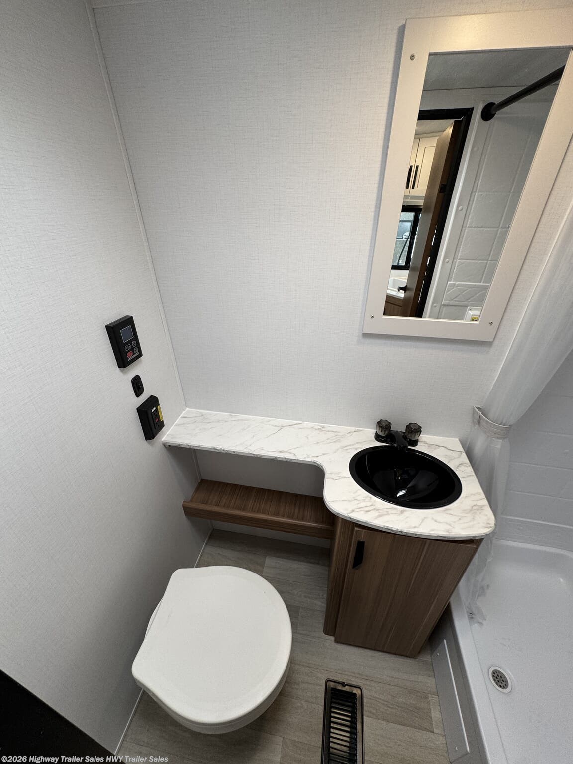 - Exterior shower, tinted windows, and fiberglass sidewalls for durability and convenience