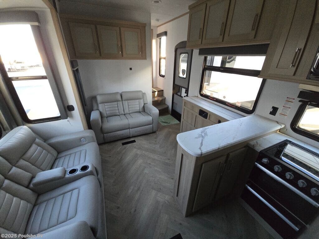 Discover a new way to explore the great outdoors with the 2025 Keystone Raptor Carbon Series 360, a top-tier toy hauler designed for ultimate adventure. Measuring an impressive 40.03 feet in length and boasting a generous Gross Vehicle Weight Rating (GVWR) of 17,500 pounds, this fifth wheel offers spacious living quarters that can comfortably accommodate up to 7 people. It features innovative sleeping arrangements, making it an ideal choice for families or groups seeking flexibility during their travels. This new RV is equipped with two slide-outs that expand the interior space, ensuring a roomy living area perfect for relaxation or entertaining. Additionally, the front and rear power leveling jacks make setup a breeze, providing convenience wherever your journey takes you. Enjoy the outdoor experience under the shelter of the single awning, designed for relaxation outside after a day of adventures. With a hitch weight of 3,505 pounds, this RV is convenient to tow, making it easier to bring your recreational gear along for the ride. As a family-owned, award-winning local RV dealer with multiple locations in Sumner, Everett, Kent, and Mt. Vernon Washington, Poulsbo RV is here to help you find the perfect RV. Experience the thrill of RVing in comfort and style. Stock#: M3567, VIN: 4YDFCNT2XSF805156.
