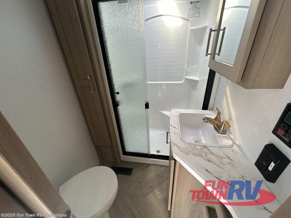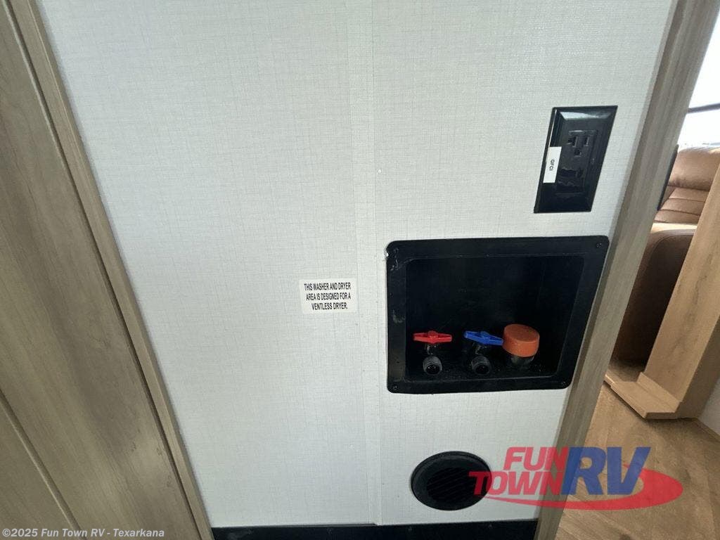 Invite the whole gang as this fifth wheel not only carries your ATV, motorcycles, and/or other outdoor toys to your destination in the 17' separate garage. The garage includes an electric bed with dual opposing sofas underneath, plus an optional second electric bed with sofas. There is also a full bath here for your guests plus washer and dryer prep! The kitchen offers a peninsula countertop with a large farmhouse style sink, appliances to whip up warm meals and heat leftovers, and a pantry to store snacks and more. There is a second full bathroom next to the front bedroom which offers a king bed, wireless phone chargers, and plenty of storage for your clothing including a slide out wardrobe. You will also enjoy a 50" LED TV with surround sound, a second pantry for all of your goodies, a 14' electric awning as well as a single 30 gallon fuel tank to keep the fun going all weekend long!