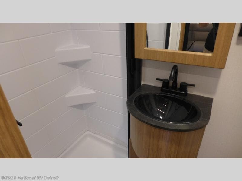 This single axle trailer is both cozy and versatile since there is a fold down sofa/Murphy bed up front! Now you can easily convert seating space into sleeping space, plus there are dual bedside closets to keep your things tidy. A two burner cooktop and air fryer/convection microwave will let you cook meals each day, and a booth dinette provides a place to dine together. You can also choose to add the optional flip-up bunk above the dinette if you need more sleeping space. And don't overlook the full rear bath that will allow you to freshen up without having to leave your camper!