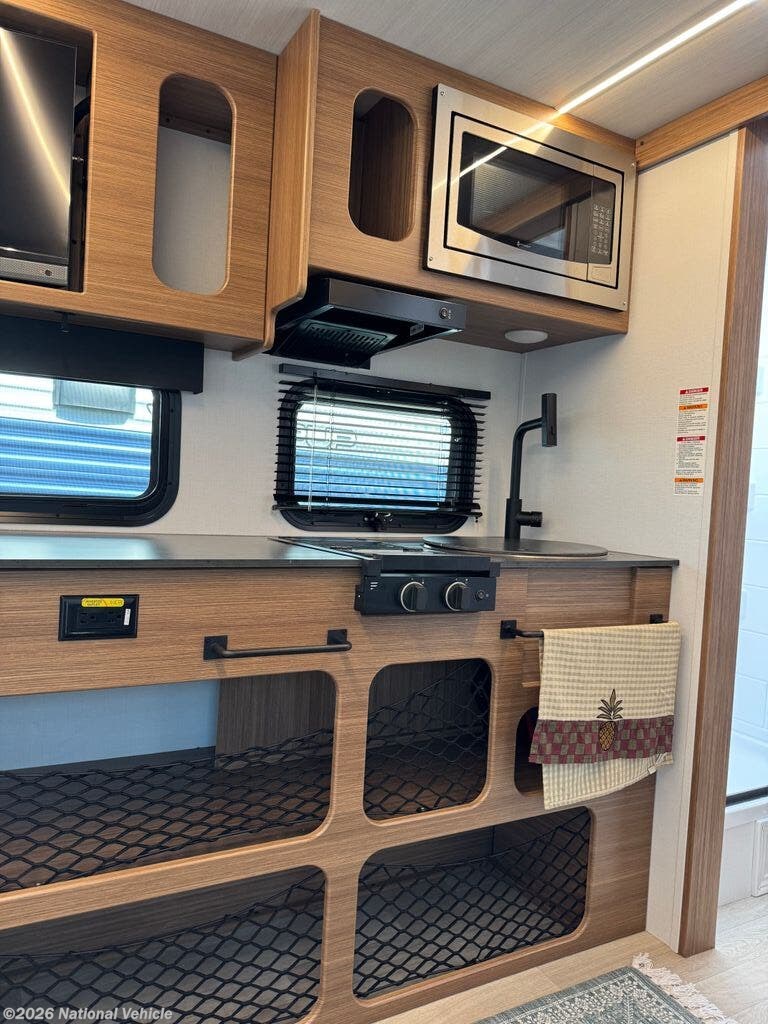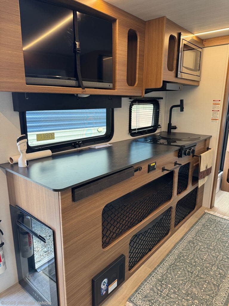 Expansive Kitchen Space: Enjoy cooking on the two-burner cooktop and convection microwave. The oversized countertop, plus a flip-up extension, gives you ample prep space-ideal for those who love to cook on the road.