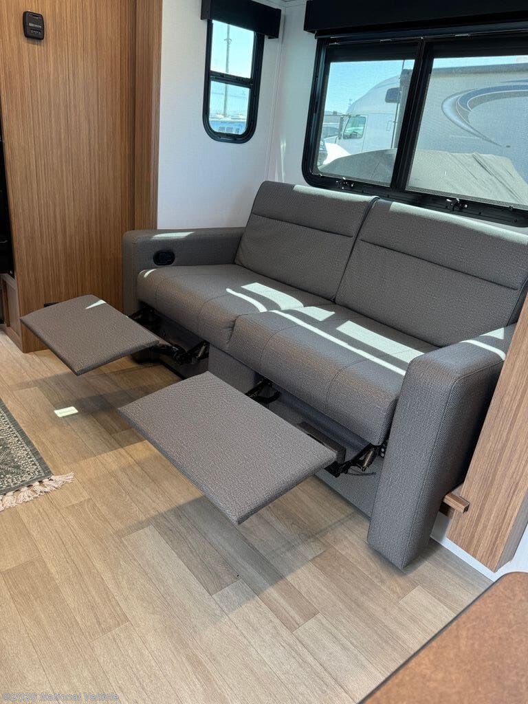 Theater Dinette Slide: Relax and unwind in style with the theater dinette slide-out, giving you more room to move and a perfect place to dine, play games, or kick back. The theater seating adds a luxurious touch, especially when paired with the cozy ambiance of the built-in fireplace.