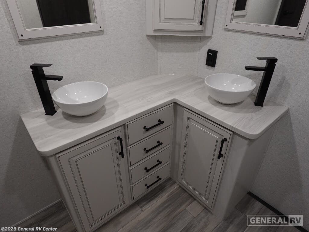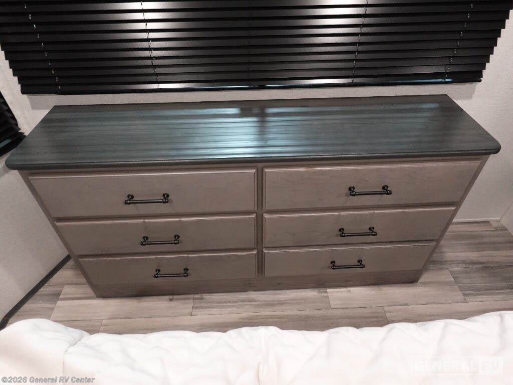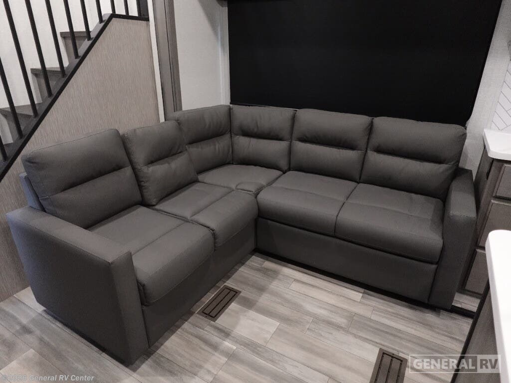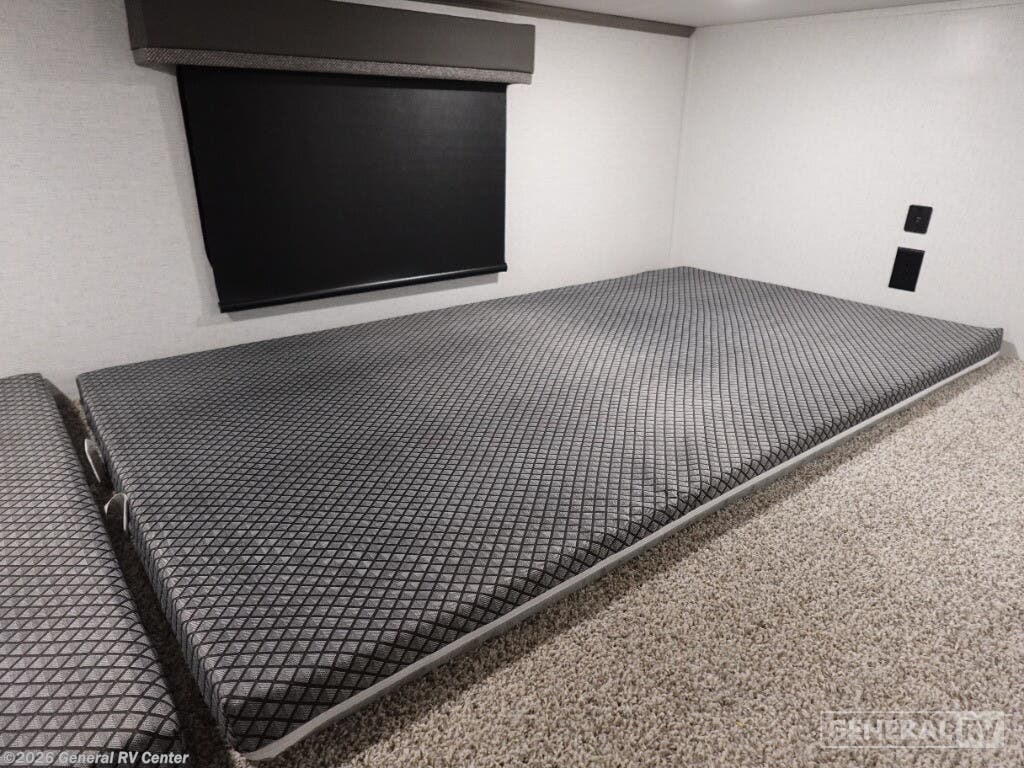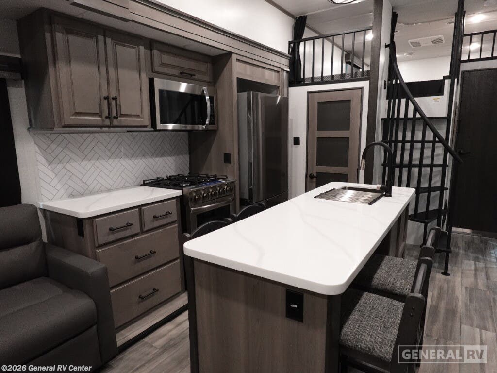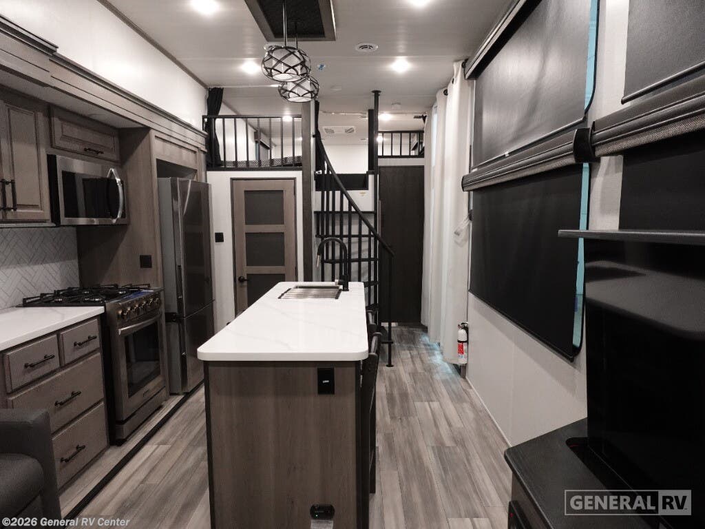 Discover the 2025 Keystone Residence 401CLDL, a perfect blend of luxury and practicality designed to make your travel experiences unforgettable. With its expansive 42.92-foot length and thoughtful layout, this RV is tailor-made for families or groups, comfortably sleeping up to nine people. The double bed, king bed, and convertible sleeping options ensure everyone has a cozy spot to rest. The innovative bunkhouse design adds extra sleeping space, making it ideal for families with kids or guests. The center kitchen is a culinary delight, equipped with a full-size refrigerator and a three-burner cooktop, ensuring you can prepare delicious meals on the go. Enjoy your meals at the stylish bar stools or relax in the inviting center living area, complete with a sectional sofa and entertainment center. The 26-foot powered retractable awning extends your living space outdoors, perfect for enjoying sunny days or starry nights. With its automatic heater and ample water capacities, the Residence 401CLDL is ready for all seasons. For more information or to explore this model in person, visit your nearest General RV dealership.
