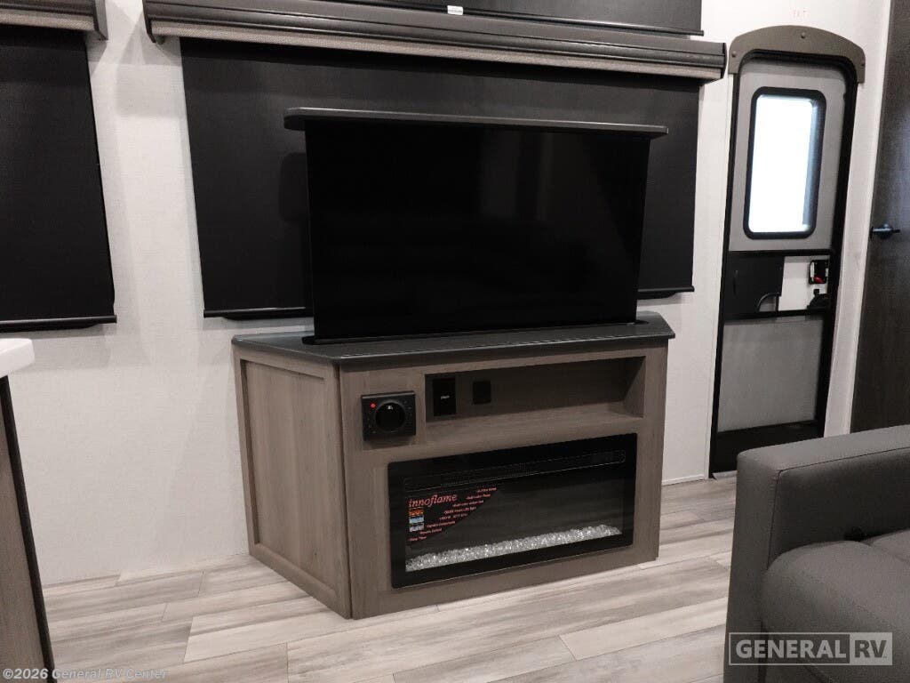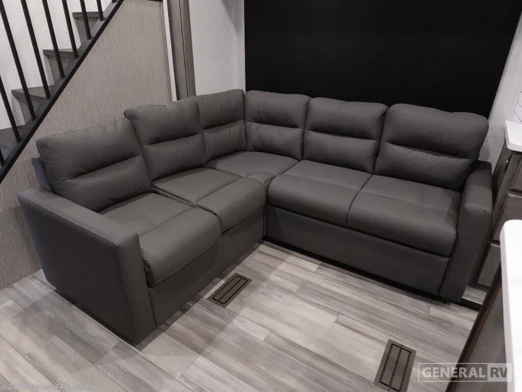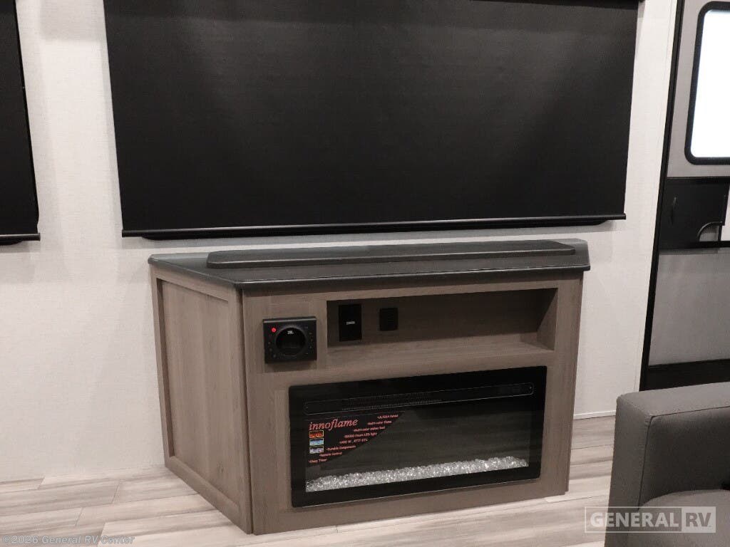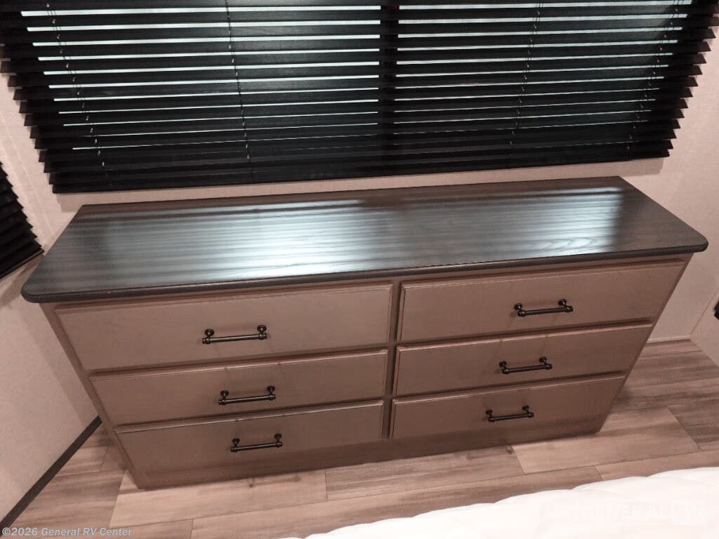 Discover the 2025 Keystone Residence 401CLDL, a perfect blend of luxury and practicality designed to make your travel experiences unforgettable. With its expansive 42.92-foot length and thoughtful layout, this RV is tailor-made for families or groups, comfortably sleeping up to nine people. The double bed, king bed, and convertible sleeping options ensure everyone has a cozy spot to rest. The innovative bunkhouse design adds extra sleeping space, making it ideal for families with kids or guests. The center kitchen is a culinary delight, equipped with a full-size refrigerator and a three-burner cooktop, ensuring you can prepare delicious meals on the go. Enjoy your meals at the stylish bar stools or relax in the inviting center living area, complete with a sectional sofa and entertainment center. The 26-foot powered retractable awning extends your living space outdoors, perfect for enjoying sunny days or starry nights. With its automatic heater and ample water capacities, the Residence 401CLDL is ready for all seasons. For more information or to explore this model in person, visit your nearest General RV dealership.