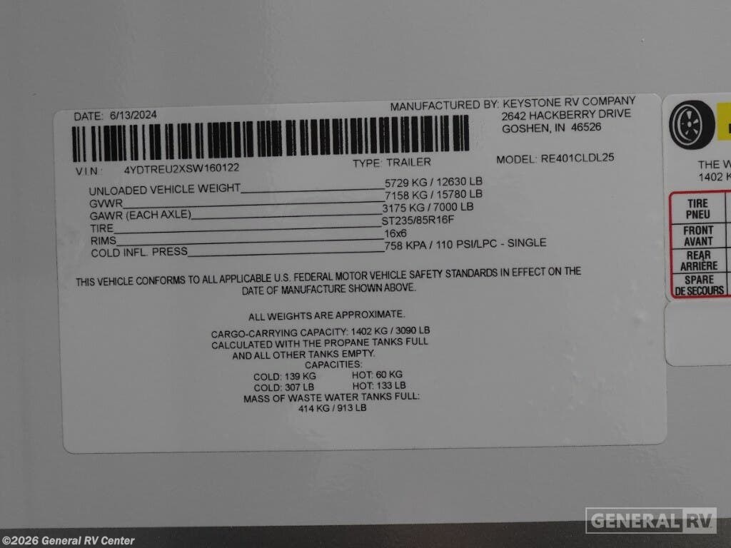 Request More Info on this 2025 Keystone Residence 401CLDL Offered for sale by General RV Center