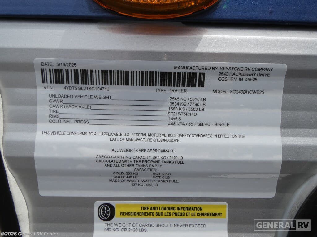 Experience the perfect blend of comfort and adventure with the 2025 Keystone Springdale Classic 240BHCWE. Designed to accommodate up to eight happy campers, this RV offers a cozy retreat with a queen bed, two double beds, and a convertible sleeping area. The well-planned layout features a center kitchen and living area, making it a welcoming space for meal prep and relaxation. The 18 ft. powered retractable awning extends your living space outdoors, perfect for enjoying those sunny days. In the rear, you'll find a convenient bathroom with a shower curtain for privacy, and a bunkhouse that adds a touch of fun for the kids. The full-size electric refrigerator ensures you have all the space you need for your culinary adventures. With thoughtful details like an automatic heater and a single slide-out for extra room, this RV is your ticket to unforgettable journeys. For more information, visit your nearest General RV dealership.