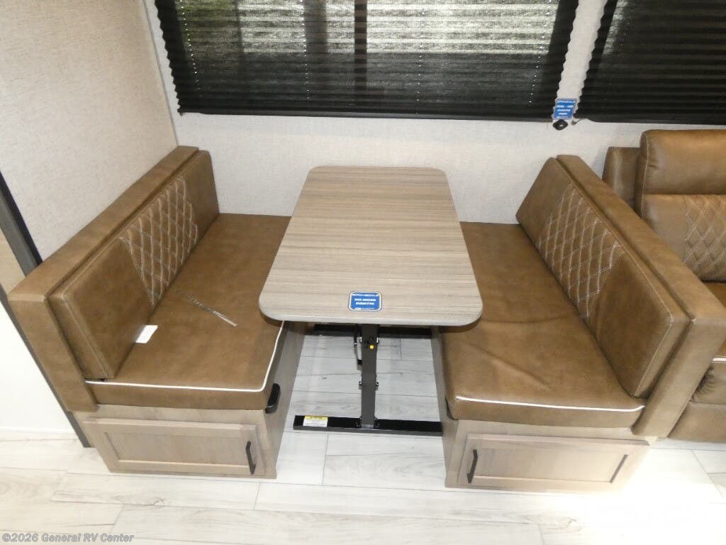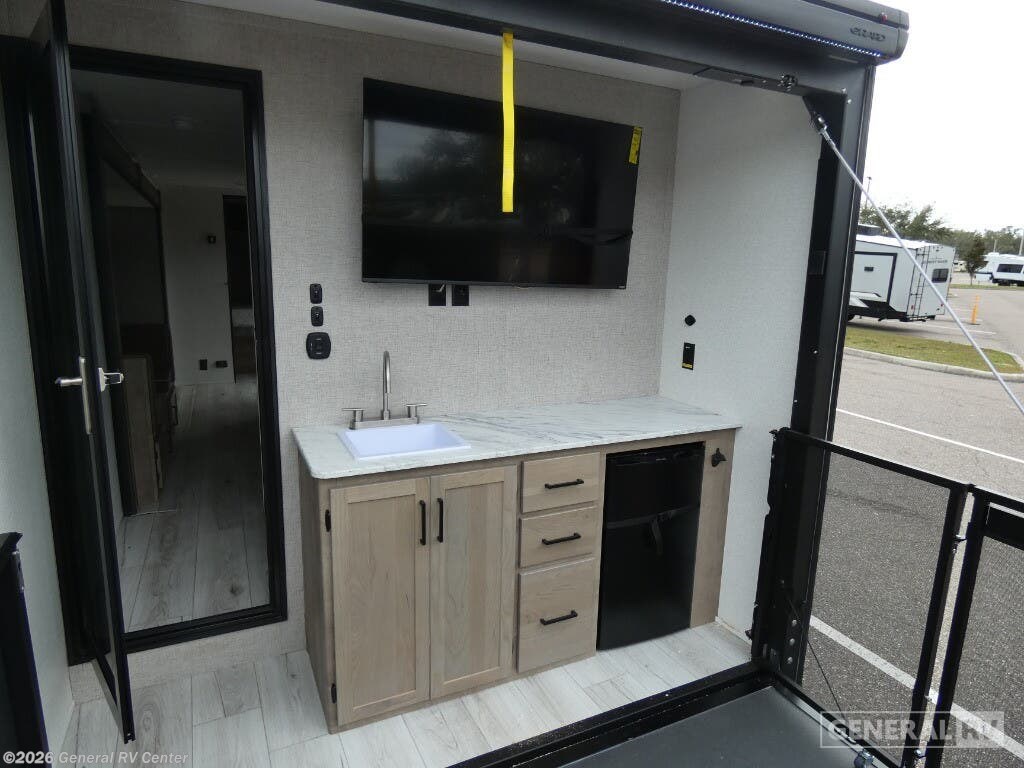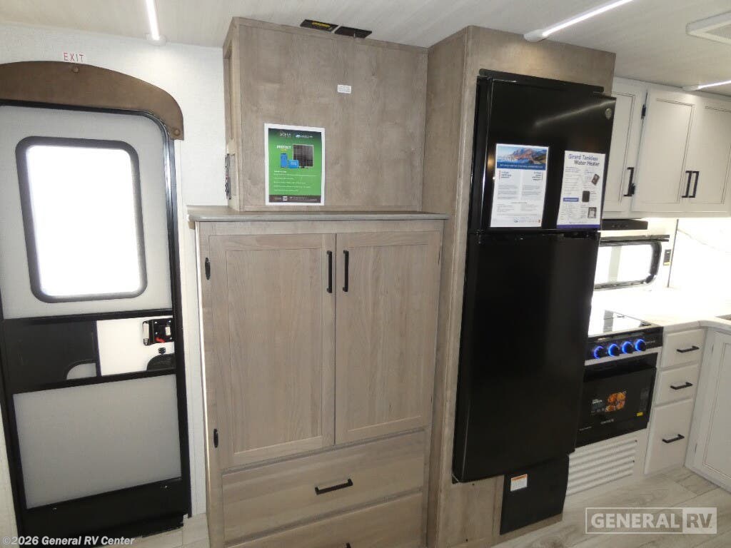 Embrace the open road with the 2025 Keystone Springdale 266DECK, a travel trailer that combines comfort and style with the great outdoors. This spacious RV, stretching over 30 feet, offers a delightful blend of indoor luxury and outdoor adventure. The highlight is undoubtedly the expansive rear deck area, perfect for enjoying morning coffee or evening sunsets. Inside, the center kitchen is a culinary haven with a full-size electric refrigerator and a three-burner cooktop, making meal preparation a breeze. The center living area, complete with a cozy sofa and booth dinette, provides ample space for relaxation and entertainment, ensuring that every journey is as comfortable as it is memorable. Retreat to the front bedroom where a plush queen bed awaits, promising restful nights after days filled with exploration. The thoughtful design includes plenty of storage with dual closets, ensuring you have all the space you need for your belongings. The rear bath features a convenient shower curtain setup, adding a touch of home-like comfort. With a 21-foot powered retractable awning, you can effortlessly extend your living space outdoors. Whether you're lounging inside or enjoying the fresh air on the deck, the Springdale 266DECK is your perfect companion for unforgettable adventures. For more details, visit your nearest General RV dealership.