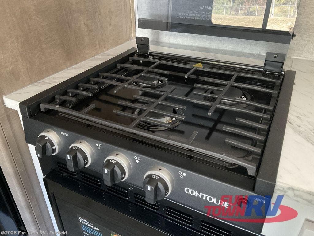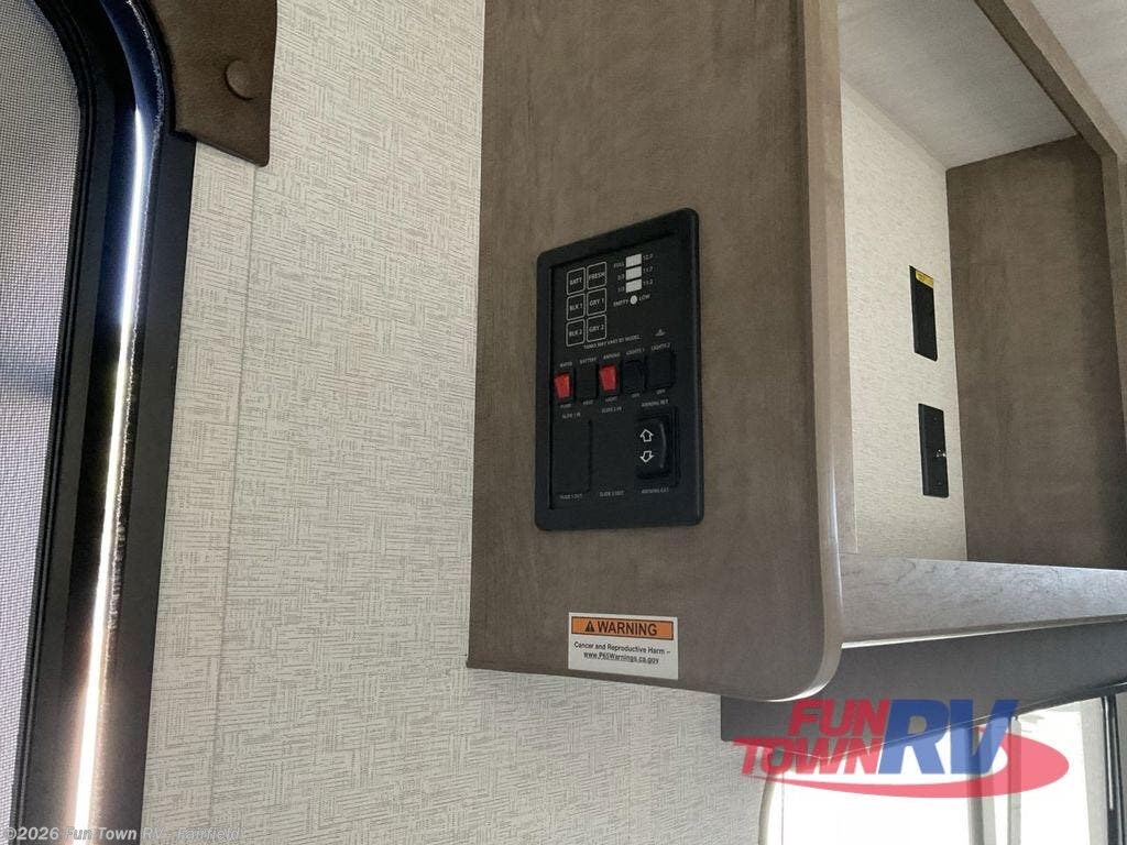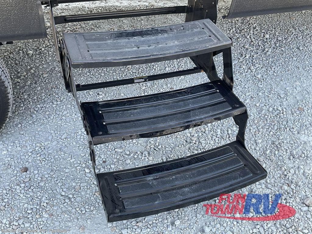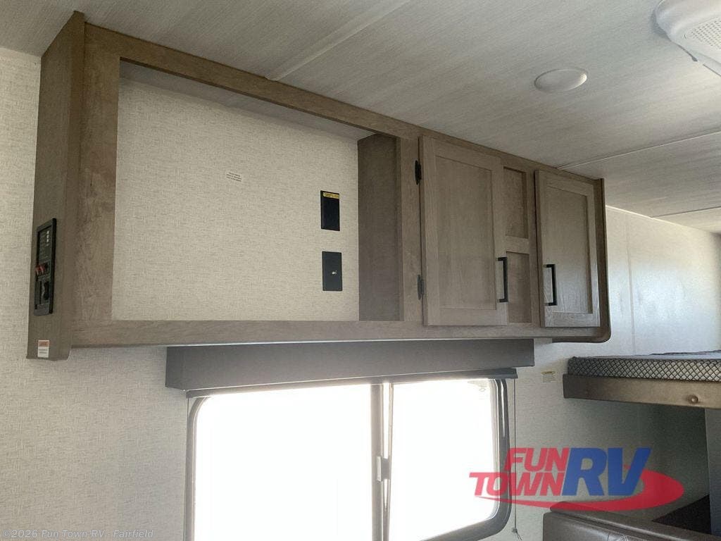 Bring the whole gang and explore with this bunkhouse travel trailer in tow! There is sleeping for up to 10 with double-size bunk beds, a queen bed up front, as well as a sofa and booth dinette that can accommodate more when reconfigured at night. You will easily be able to create meals to enjoy while camping inside with the three-burner range and a 10 cu. ft. 12V refrigerator. Overhead storage is available above the stove and sink and along the opposite side. There is also a front pass-through for housing all of your outdoor gear, as well as additional outside storage beneath the bunk beds. The 12' power awning will also provide more living space and outdoor protection from the sun and/or rain.