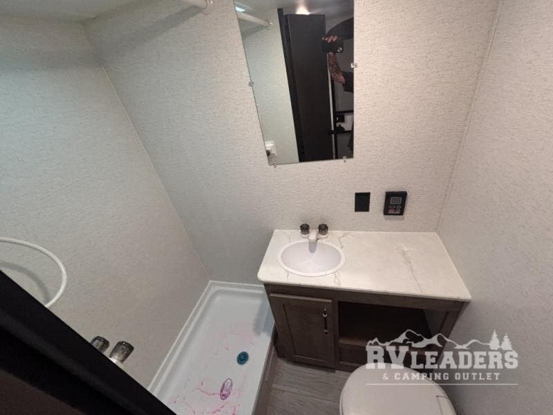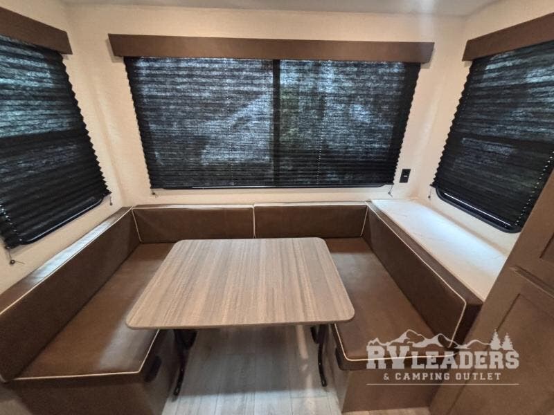You will find lots of storage inside and outside this trailer allowing you to bring along everything you need for a great camping trip! Along the exterior there is a pass-thru compartment for your outdoor gear and a 10' power awning giving you a covered outdoor living area to enjoy. The cook will have a two burner gas range to make meals, and everyone can dine around the U-shaped dinette. There is a full bathroom to get cleaned up in before bedtime, and a queen bed to fall asleep quickly so you can have fun again tomorrow.
