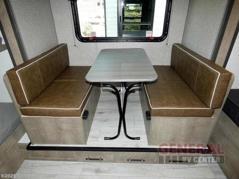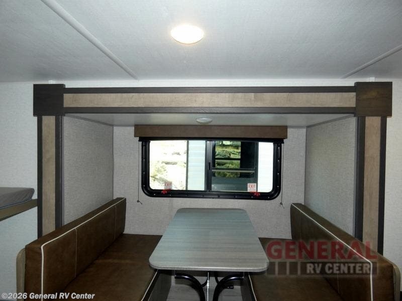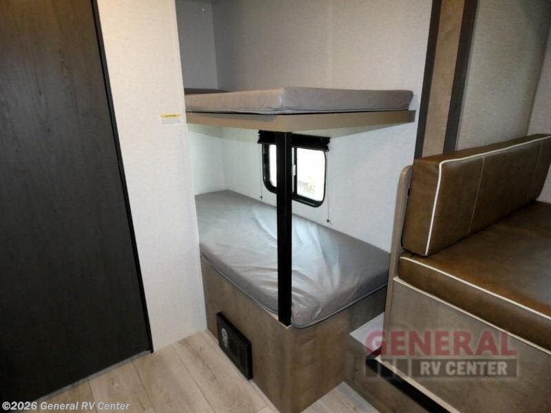 When you say "camping" your kids will immediately think about sleeping on the bunk beds and playing outdoors! There is something about planning the trip that gets everyone excited, and once at your campsite, the excitement grows. You will have your own bed up front as well as a closet and nightstand for your things. The booth dinette doubles as sleeping space and includes drawers for storage, plus the slide provides more floor space. The cook can make warm meals in the galley kitchen, and the full bathroom will keep everyone refreshed and ready for the next day.