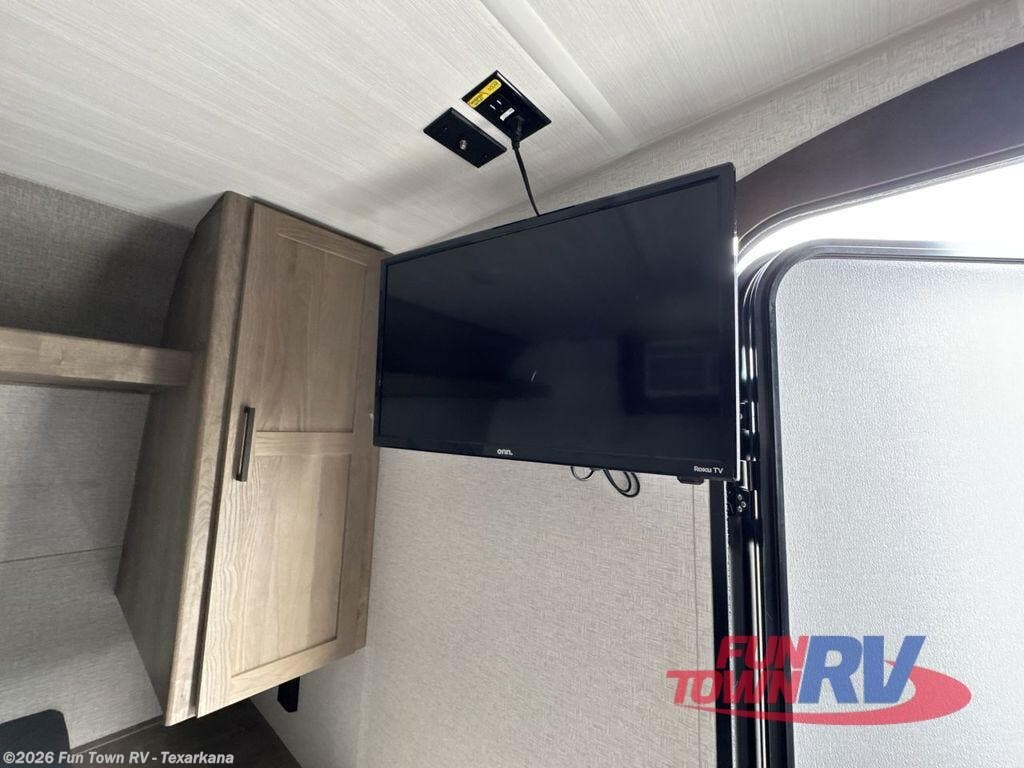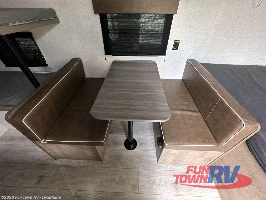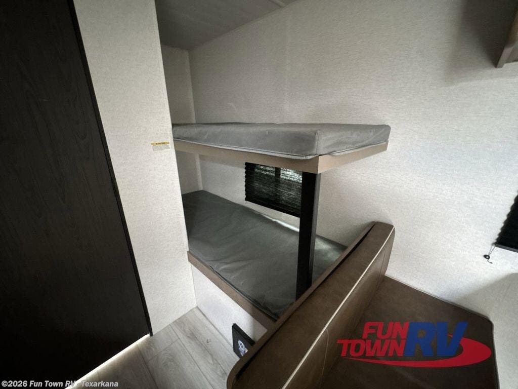 Get ready for outdoor fun with your favorite people when you have this trailer in tow! Once at your campsite, you can easily setup the 10' power awning, grab your camping chairs from the pass-thru storage, and relax or start playing. The cook will love the galley kitchen with the two burner cooktop, plus a refrigerator for cold items. If you like, you can eat inside at the booth dinette which doubles as sleeping space, and of course the kids will love the bunk beds next to the full bathroom. And you will sleep soundly on the front queen bed.