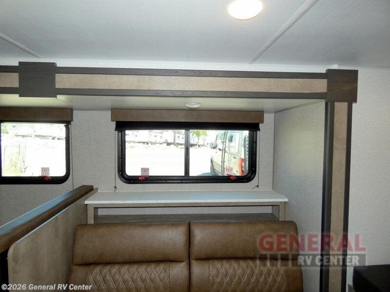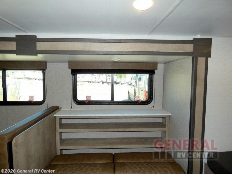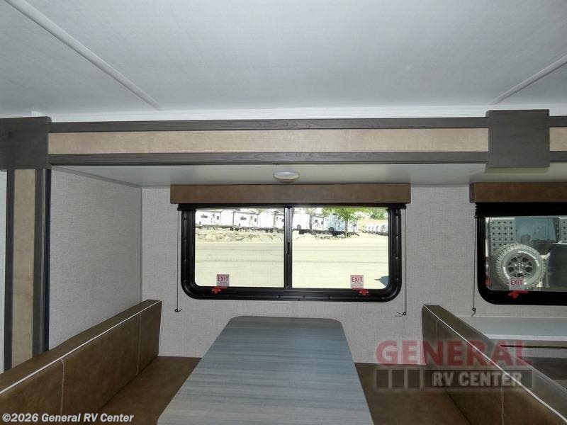 When you want to explore the outdoors and relax indoors, this trailer will provide the comforts, conveniences and many of the wants you will need to do both! The interior is spacious with the large slide out which includes a booth dinette and sofa, both with storage drawers. And the furniture doubles as sleeping space when you have overnight guests. There is a pantry and a closet next to the full bathroom which is handy, and the galley kitchen offers a 7.7 cu. ft. 12V refrigerator to store the cold items. You will also sleep soundly each night on the front queen bed. The exterior offers a 15' power awning plus a pass-thru compartment for your outdoor camping chairs, tables, charcoal and more.