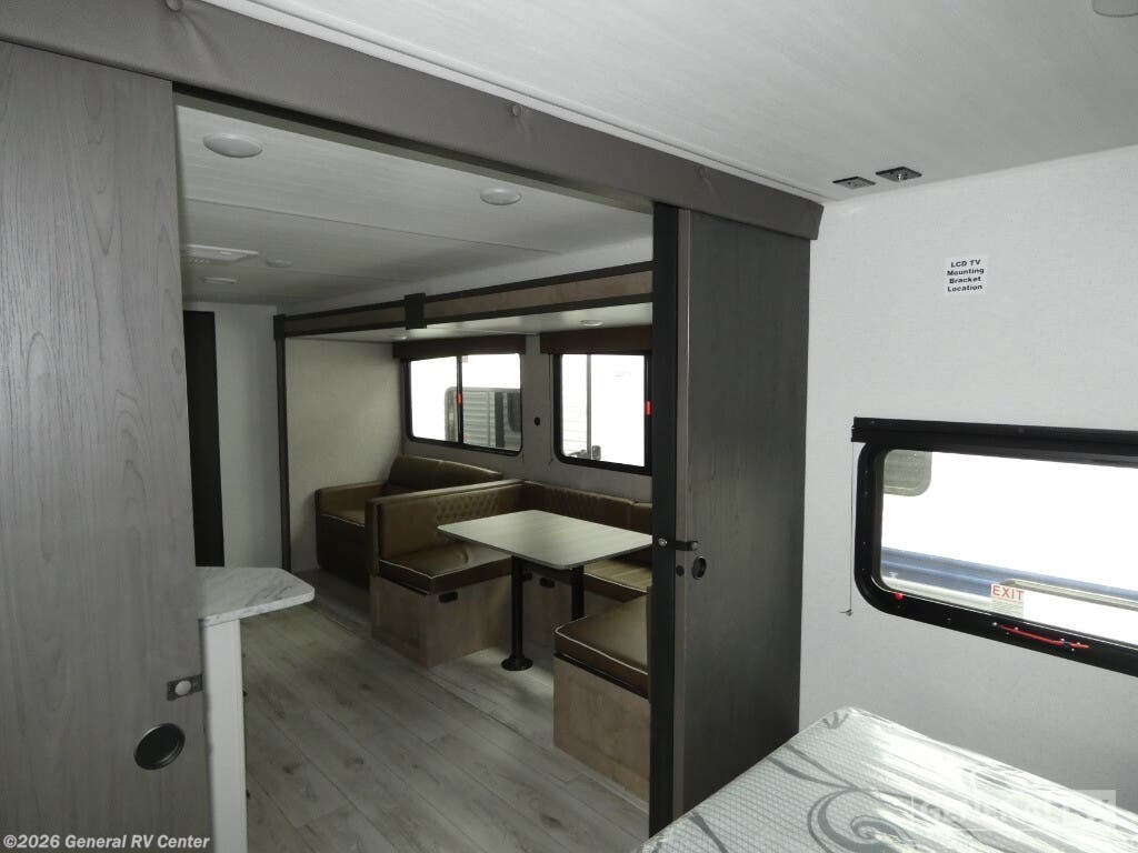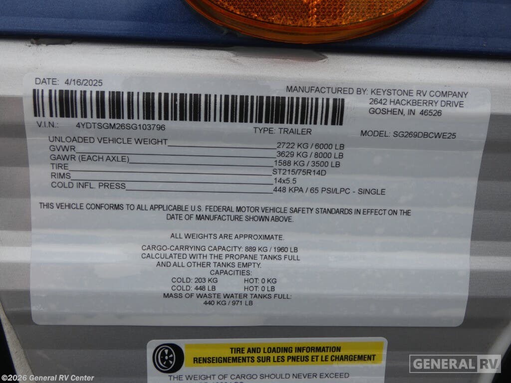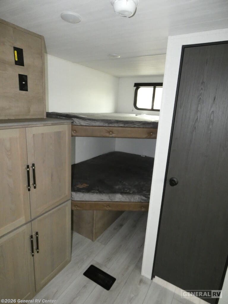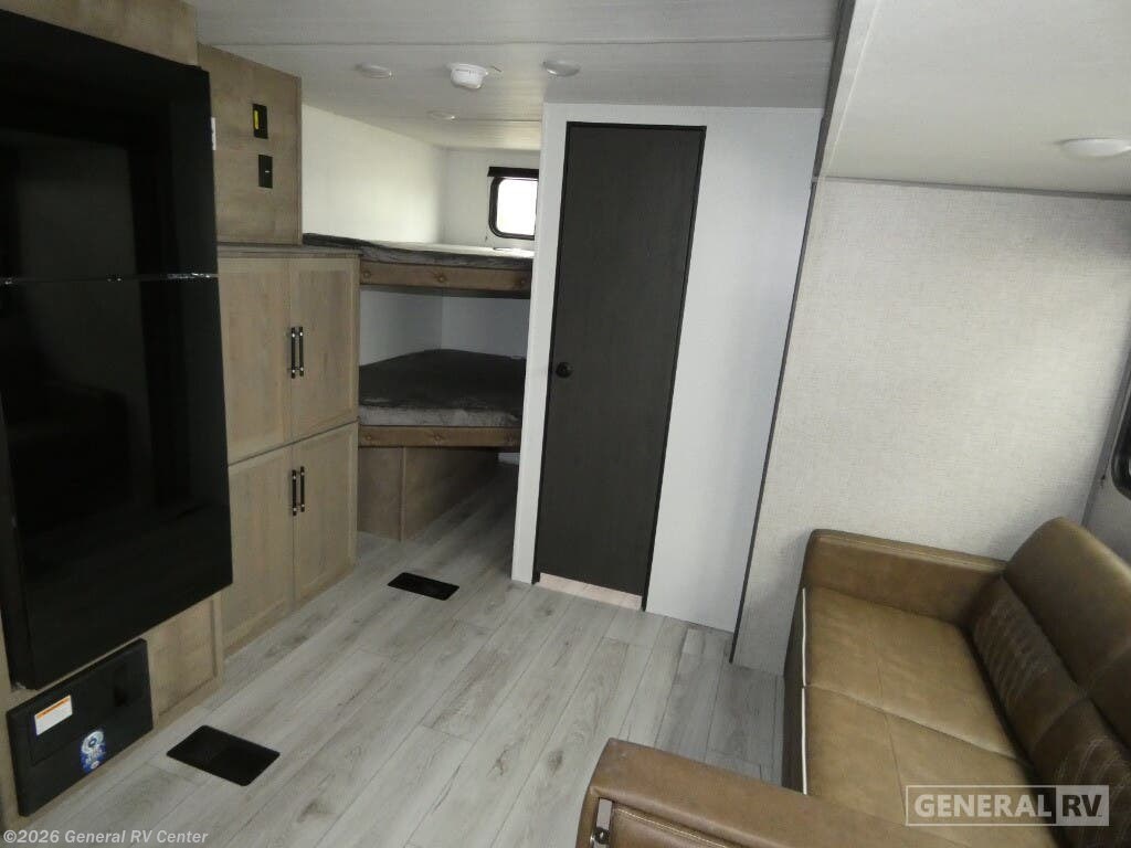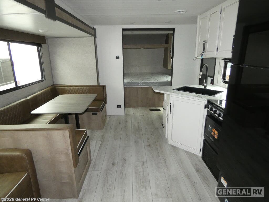 Unveiling the 2025 Keystone Springdale Classic 269DBC, a perfect blend of comfort and functionality designed for families and adventurers alike. This spacious travel trailer, stretching over 30 feet, offers an inviting atmosphere with its center kitchen and living area, providing a seamless flow for gatherings and meal preparations. Equipped with a full-size electric refrigerator and a three-burner cooktop, your culinary needs are effortlessly met, whether you're whipping up a quick breakfast or a gourmet dinner. The U-shaped dinette and cozy sofa convert into additional sleeping spaces, ensuring everyone has a comfortable spot to rest. The front bedroom houses a queen bed, offering a private retreat with ample storage in dual closets. At the rear, you'll find a bunkhouse perfect for the kids or guests, adjacent to a well-appointed bathroom featuring a shower with a curtain for privacy. An 18-foot powered retractable awning extends your living space outdoors, perfect for enjoying the fresh air while shaded from the sun. With a cargo capacity of 1,645 pounds and a dry weight of 6,330 pounds, this RV is ready to hit the road for your next adventure. Visit your nearest General RV dealership to explore this model and start your journey today!