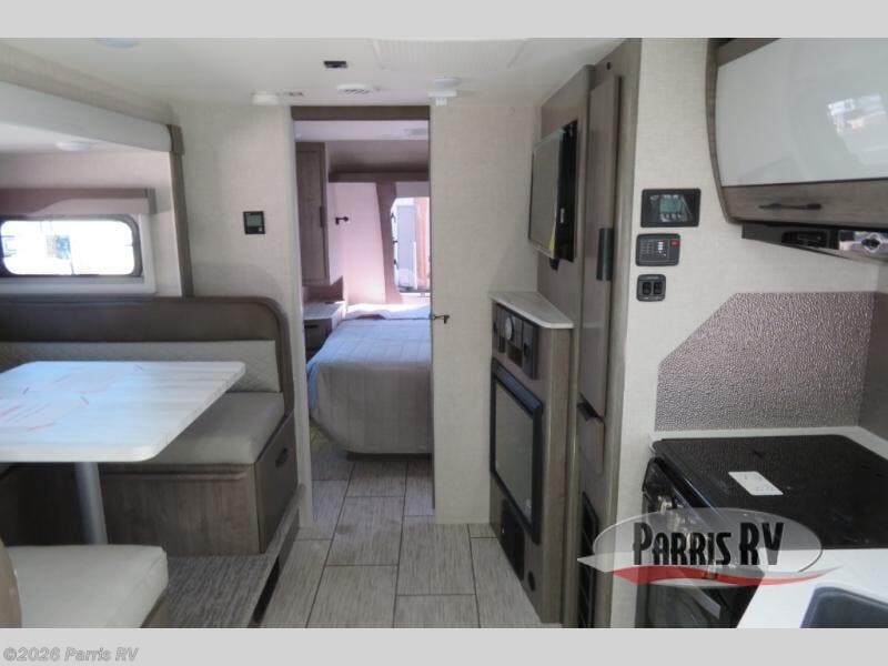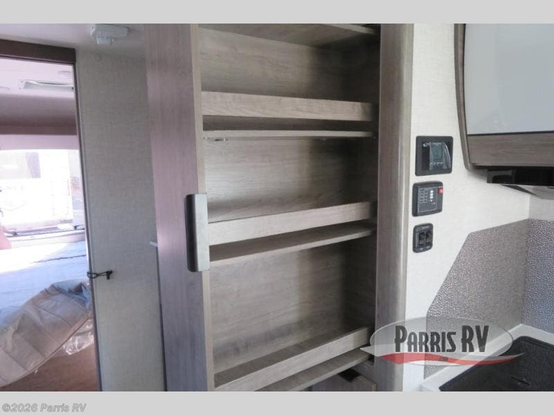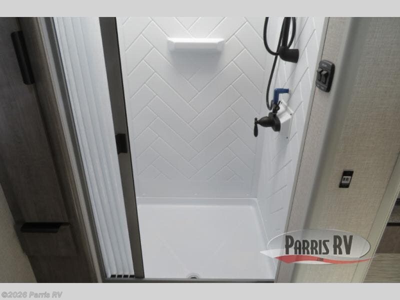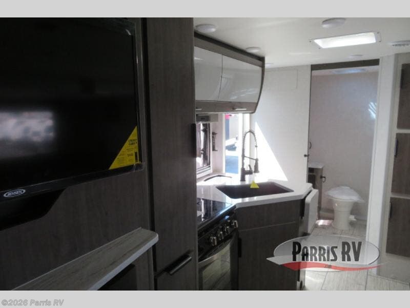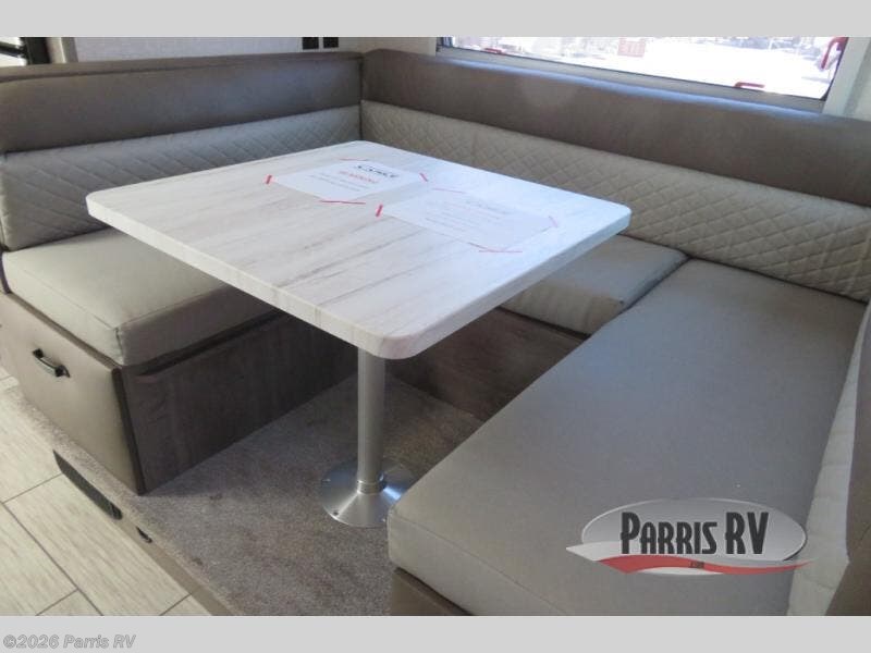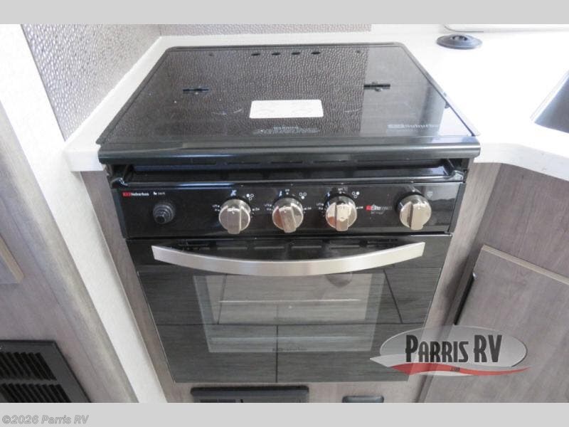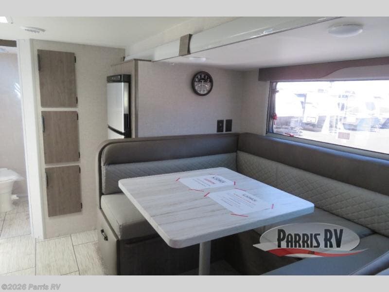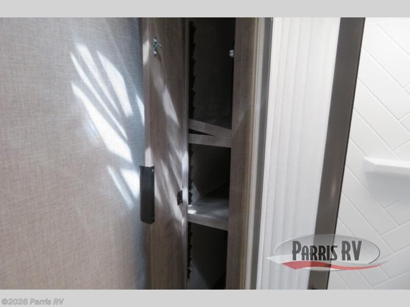This spacious travel trailer is the perfect companion for all your adventures. The front bedroom includes a deluxe queen innerspring mattress with a pillow top, dual bedroom wardrobes, and a floor-to-ceiling walk-in closet to keep your clothes tidy. The stainless steel three burner cooktop will let you prepare meals each day and the double door refrigerator will keep food fresh. A U-shaped dinette provides a place to dine, play games, and let guests sleep over, and the slide out here gives you more floor space to move about. This model also has a full rear bath with tons of counter space, a large walk-in shower, and more!