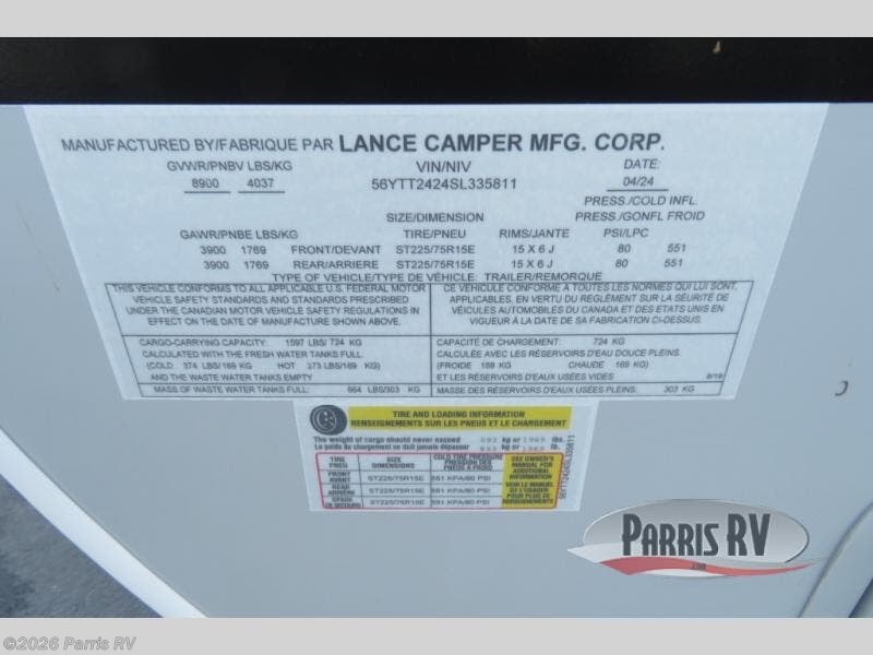 Request More Info on this 2025 Lance Lance Travel Trailers 2465 Offered for sale by Parris RV