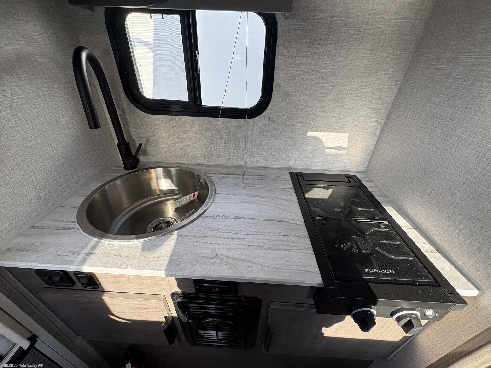 As you enter this rear entry layout, you will find a large cabinet storage space on your left and a full stand-up wet bath on your right. Midship, the camper opens up to an attractive dinette space that converts into an extra bed, located opposite a spacious galley designed specifically for this type of camper. Overhead storage is found throughout and extends into the cabover, where you also have a real queen-size bed.
