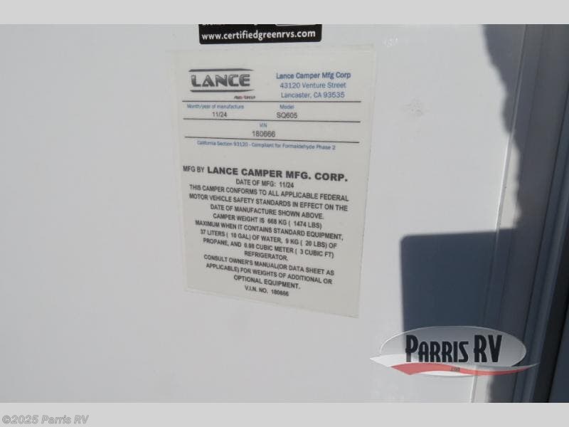 Request More Info on this 2025 Lance Squire Truck Campers SQ605 Offered for sale by Parris RV