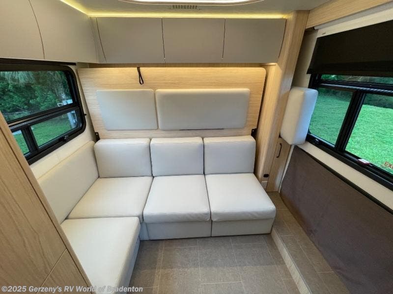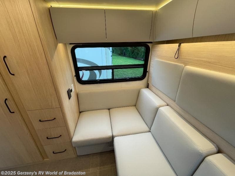Each Unity Class B+ diesel motorhome by Leisure Travel sits on a durable Mercedes-Benz Sprinter 3500 dual rear wheel chassis with a 2.0-L Turbocharged I-4 diesel engine to power your adventures. The powder coated steel undercarriage support structure and vacuum-bonded construction provide a coach that will last for years, and there are eight sleek exterior paint options to make the coach your own. You'll love driving the Unity with its electronic stability control, adaptive cruise control, 9-speed automatic transmission with quieter noise levels and more comfort. There is even a digital mirror with sharp high-resolution that can be switched between convectional display and digital display for convenience. The luxurious interior includes Ultraleather furniture, a contoured solid surface Corian countertop in the kitchen, new decor options, plus many more comforts. And all of your power need will be met with 270-Ah, 12V Lithium coach batteries with an internal heating system, plus a 3000W pure sine inverter and a 30 Amp power cord. If you choose the optional 60th Anniversary Edition, you will enjoy the Diamond White exterior paint, diamond-quilted upholstery, Cool Ice Ultrafabrics, matte black hardware, and more elegant features that are exclusive to this package!