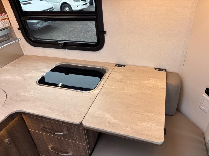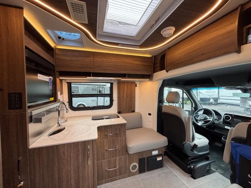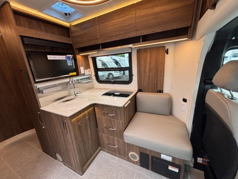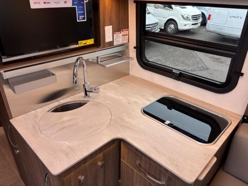 Experience one of the most innovative Class B+ motorhomes on the market with the 2025 Leisure Travel Vans Unity U24RL. This versatile floorplan gives you two separate living spaces, making long trips more comfortable and giving you room to unwind, work remotely, or host guests. The front dinette easily converts to an optional front bed, supported by the swivel captain’s chairs— ideal for grandkids, friends, or overnight visitors.