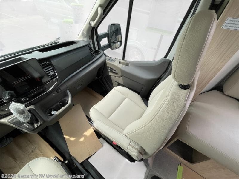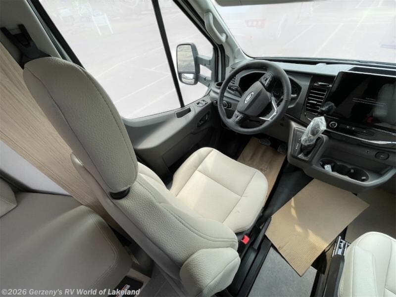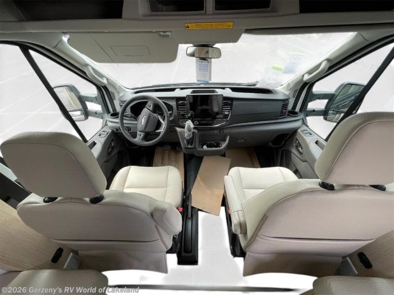 With any Leisure Travel Wonder Class B+ gas motorhome, the construction includes vacuum bonded aluminum framed insulated contoured sidewalls and a domed roof with fiberglass exterior, and a floor with composite exterior on a Ford Transit dual rear wheel chassis. Some highlights include the 16" heavy-duty forged aluminum alloy wheels, the auto high-beam headlamps, and the advance active safety features. The interior offers the SYNC 4 navigation system, curved soft close overhead cabinetry doors with hidden catches, full extension ball bearing soft close drawer tracks, LED aisle lighting and above cabinet hidden accent lights, and tile look vinyl flooring throughout for style and easy care. Optional AWD is available, along with the optional 60th Anniversary Edition decor and exterior color, solar panels for off-grid capability, a battery upgrade, and more!