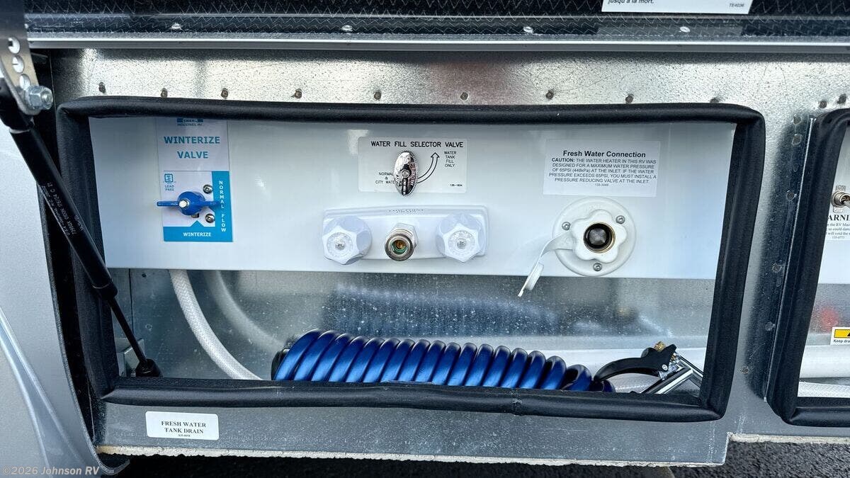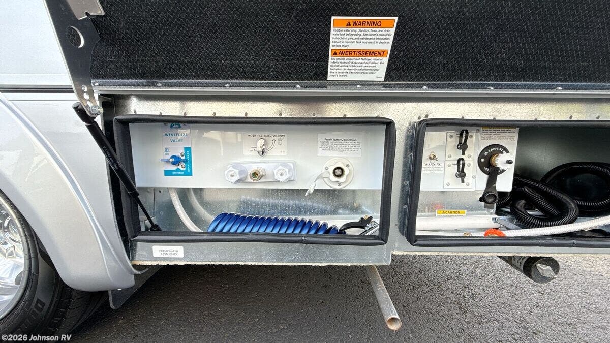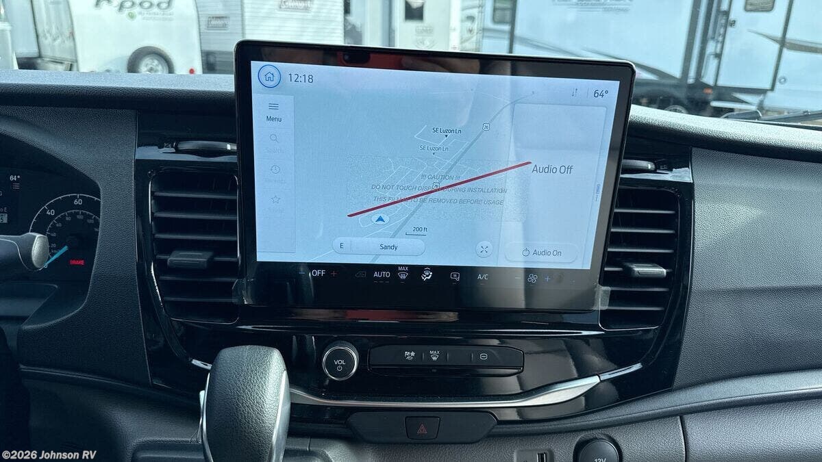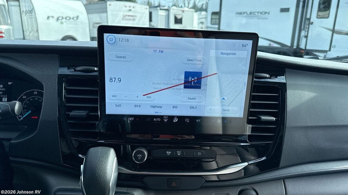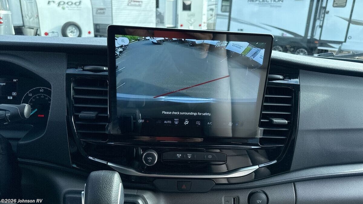 Features Include: 178-inch Wheelbase, 250-Amp Alternator, Tow-Haul Mode, Dual Rear Wheels, Driver Alert, Ford Co-Pilot 360, Front Fog Lamps, Intersection Assist, Lane-Keeping Assist, Pre-Collision Assist, Remote Start, Air Conditioning, Rear-View Camera, Awning LED Lights, Entry Screen Door, LED Aisle Lighting, Awning-Style Windows, Roller Shades, Pull-Out Pantry, Garbage Can, 120v GFCI Outlet, Mobile App Control, USB-A, USB-C Outlets, Medicine Cabinet, 120v GFCI Outlet, Shower Skylight, Flip-Down Towel Bar, Surge Protector, 19k Furnace (RL, RTB), Water Heater Bypass, Black Tank Flush, Fiberglass Exterior